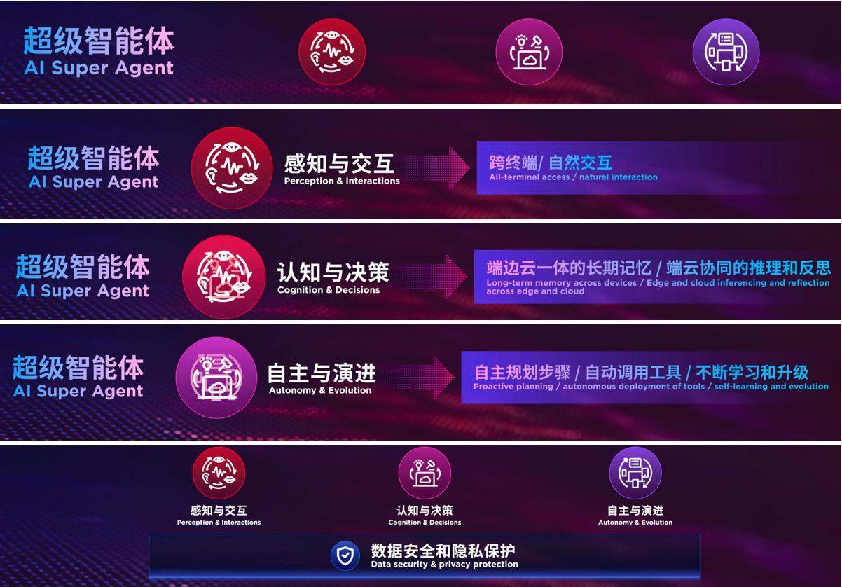 在感知与交互层面,超级智能体通过多模态技术实现了对用户状态和环境的全方位感知。它不仅能识别文字、语音指令,还能捕捉手势、追踪眼动,实现跨设备的无缝交互体验。以联想智能眼镜为例,当用户进入超市时,系统会结合用户的健身数据和饮食记录,提供个性化的购物建议,甚至会根据用户当天的运动状态灵活调整推荐内容。 认知与决策能力则是超级智能体的核心优势。通过建立端边云一体的长期记忆体系,它能够维护跨设备、跨生态的统一知识库,理解用户的专业背景和历史行为模式。例如,当用户输入专业缩写时,系统会自动匹配与用户职业最相关的解释;它还能自动整合存储在不同设备上的笔记,生成结构化的思维导图,同时保障数据安全与隐私。 超级智能体的自主与演进功能则代表了人工智能发展的前沿方向。它能够将复杂任务分解为多个子任务,并根据用户习惯自动规划执行步骤。例如,组织一场户外烧烤活动时,系统可以自主完成场地预约、食材采购、朋友邀请等一系列操作,调用电商、社交、导航等多种服务完成任务链。更重要的是,超级智能体具备自我学习能力,会随着使用频率的增加不断优化其决策逻辑,真正实现"用户用得越多,它越懂你"的智能进化。 数据安全和隐私保护是贯穿这三大功能的基座。“这是超级智能体不可妥协的价值主张和创新准则”,杨元庆表示。 (责任编辑:王治强 HF013)
