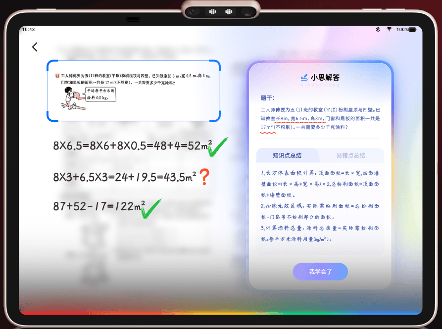 提问是更好的学习。一项学而思与北京大学教育学院学习科学实验室共同开展的研究表明,学生在使用学习机时的提问频次与内容,与学业成绩、自我调节水平显著相关。基于此,学而思推出 “小思 AI 1 对 1” 等创新功能。“小思 AI 1 对 1”打破传统学习机被动响应模式,能够主动引导学习,与学生展开连续对话,根据学情动态生成内容,真正实现因材施教。在答题批改环节,不仅能精准指出错误,还能深入分析原因并给出改进建议;通过情绪感知技术,及时给予学生鼓励或祝贺,成为学生学习路上的贴心伙伴。