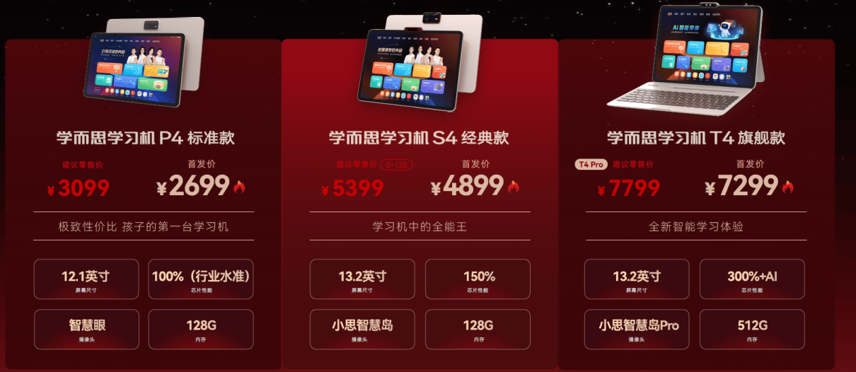 学而思此次推出的P、S、T三大系列学习机,针对不同学段和学习需求打造差异化产品矩阵,以满足不同学生群体的多样化学习需求。