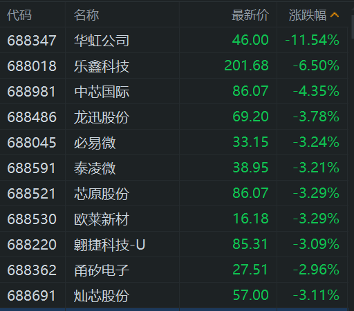 格隆汇5月9日|半导体股股集体下跌,其中,华虹公司大跌超11%,中芯国际跌超4%,泰凌微、芯原股份、欧莱新材、龙讯股份、必易微皆跌超3%。