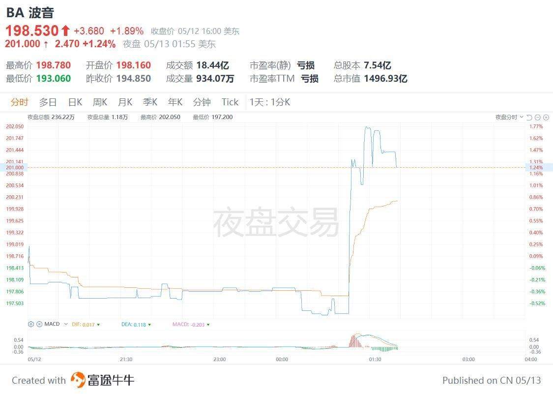 格隆汇5月13日|在中美就关税下调达成协议后,中国对波音飞机的接收问题迎来转机。彭博引述知情人士透露,中国允许境内航空公司恢复接收波音飞机。知情人士表示,中国政府本周开始通知相关部门和国内航空公司,可以恢复接收波音飞机。知情人士说,是否接收波音飞机将取决于航空公司自身商业需求,航空公司可以自行磋商、决定和安排何时恢复接收。 波音(BA.US)在夜盘交易中一度拉升涨1.77%。