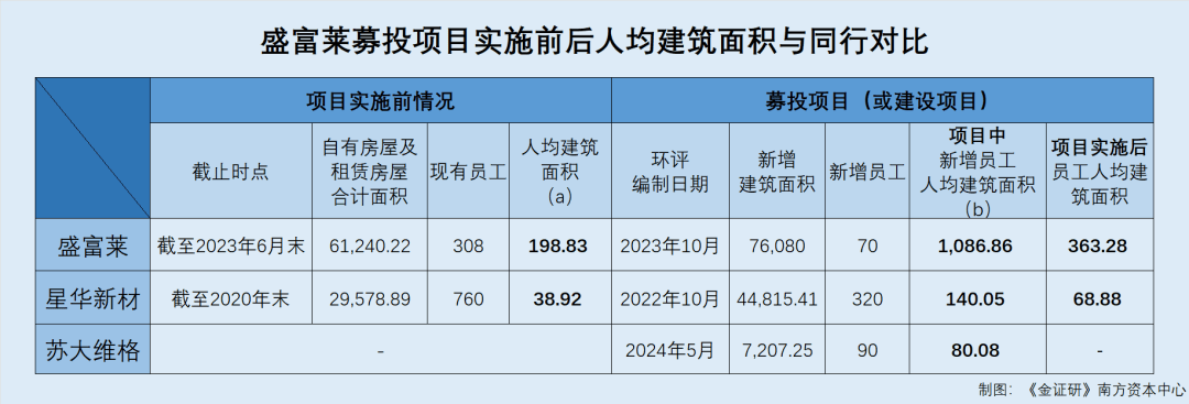《金证研》南方资本中心 望山/作者 西洲 映蔚/风控 此番冲击北交所的江西盛富莱光学科技股份有限公司(以下简称“盛富莱”),其2024年的“成绩单”或并不“亮眼”。2024年,盛富莱实现营收2.43亿元,同比增长-8.37%,实现净利润3,813.66万元,同比增长-17.93%。 回溯历史,盛富莱2020年竣工并于次年验收的两项建设项目,合计投资额超1.9亿元,但考虑其披露的在建工程转固金额、固定资产增加额及土地使用权增加的情况,或难解释与上述两项目投资额的差额,盛富莱转固金额或现疑云。而近年来,盛富莱主要产品高折射率玻璃微珠产能利用率逐年下滑的同时收入下滑,而此番上市拟募资扩产该产品。而该募投项目拟建车间中,备用车间面积超过一万平方米。观其背后,无论是该项目的员工人均建筑面积,还是项目实施后盛富莱全体员工的人均建筑面积,或远超两家同行水平。 一、两项投资额合计超1.9亿元的竣工项目或“去向成谜”,转固金额现疑云 在上市核查过程中,造价金额较大、施工周期较长、工程进度相对难以核查的在建工程,值得关注。 而2020年,盛富莱两项涉及固定资产投入的建设项目竣工,并于次年验收,两个项目合计投资额超1.9亿元。然而盛富莱2020-2024年的在建工程或并未披露该两个项目,其转固金额或现疑云。 1.1 两个建设项目均于2020年竣工次年验收,合计投资额超1.9亿元 据出具日2022年6月18日的《江西盛富莱光学科技股份有限公司与中天国富证券有限公司对<关于江西盛富莱光学科技股份有限公司挂牌同时定向发行申请文件的第一次反馈意见>的回复》(以下简称“挂牌前首轮反馈意见回复”),截至2022年6月18日,盛富莱已建项目“道路标线用全天候高亮反光珠项目”(以下简称“高亮反光珠项目”)、“微棱镜型反光膜改扩建项目”(以下简称“反光膜改扩建项目”)均已自主验收。 其中,高亮反光珠项目建设单位为盛富莱,环评批复文号为宜区环评字(2019)5号;反光膜改扩建项目建设单位为盛富莱控股子公司江西盛汇光学科技协同创新有限公司(以下简称“江西盛汇”),环评批复文号为宜环评字(2017)34号。 据宜春经济技术开发区披露的编制日期为2019年1月的《年产10000吨道路标线用全天候高亮反光珠(一期5000吨)项目环境影响报告表》(以下简称“高亮反光珠项目环评”),盛富莱建设的“年产10000吨道路标线用全天候高亮反光珠(一期5000吨)项目”,建设性质为改扩建,投资额为6,000万元,依托现有闲置的生产车间、仓库、配电房等,办公楼、宿舍、食堂等均依托现有;新建环保工程废气处理设施,热熔划线一体机、旋振筛等生产设备均为新增,不依托现有工程。 据江西盛汇官网披露的出具日为2021年3月4日的《江西盛汇光学科技协同创新有限公司年产500万平米微棱镜型反光膜改扩建项目(二期350万平米)竣工环境保护自主验收意见》(以下简称“自验意见”),江西盛汇建设的“年产500万平米微棱镜型反光膜改扩建项目(二期350万平米)”,环评批复号为宜环评字〔2017〕34号,项目总投资为1.39亿元,工程主要内容为生产厂房、办公楼、环保工程等。 据广州绿网环境保护服务中心(以下简称“绿网”)披露的自验信息,盛富莱运营的“年产10000吨道路标线用全天候高亮反光珠(一期5000吨)项目”,环评审批文号为宜区环评字〔2019〕5号,项目实际投资额为6,000万元。 江西盛汇运营的“年产500万平米微棱镜型反光膜改扩建项目(二期350万平米)”,环评审批文号为宜环评字〔2017〕34号,项目实际投资额为1.39亿元。 对比项目名称、建设主体、项目投资额、环评批复文号可知,绿网自验信息披露的上述两项建设项目,分别与高亮反光珠项目环评、自验意见中的对应项目,及前述高亮反光珠项目、反光膜改扩建项目,或均为同一项目。以下统称为“高亮反光珠项目”、“反光膜改扩建项目”。 据绿网披露的自验信息,高亮反光珠项目环评批复时间为2020年3月4日,竣工时间为2020年12月5日,验收报告公开起始时间为2021年5月24日,验收报告公开结束时间为2021年6月23日,自验信息提交时间为2021年6月17日。 反光膜改扩建项目环评批复时间为2017年6月9日,竣工时间为2020年9月1日,验收报告公开起始时间为2021年5月28日,验收报告公开结束时间为2021年6月24日,自验信息提交时间为2021年6月17日。 经测算,高亮反光珠项目与反光膜改扩建项目合计的投资额为1.99亿元。 即是说,高亮反光珠项目、反光膜改扩建项目或均于2020年竣工,并均于2021年自主验收,且二者建设内容涉及固定资产。 在此情形下,盛富莱近年来的固定资产变动或值得关注。 1.2 2020-2024年固定资产增加额合计超五千万元,同期在建工程转固金额合计超三千万元 经《金证研》南方资本中心搜索盛富莱此次申报期间及挂牌时期公告文件,截至查询日2025年5月20日,盛富莱各版公告文件的在建工程明细及重大在建工程中,或未具体列举无高亮反光珠项目、反光膜改扩建项目的信息。 另外,据盛富莱出具日为2022年4月19日的《2020-2021年审计报告》及2023年报、2024年年报,2020-2024年末,盛富莱在建工程转入固定资产的金额分别为234.95万元、0万元、1,136.64万元、231.83万元、1,470.49万元。 而考虑近年来盛富莱的固定资产新增情况,或难解释上述异象。 据盛富莱签署日为2023年12月21日的招股说明书(以下简称“2023年12月21日招股书”)及2023-2024年年报,截至202