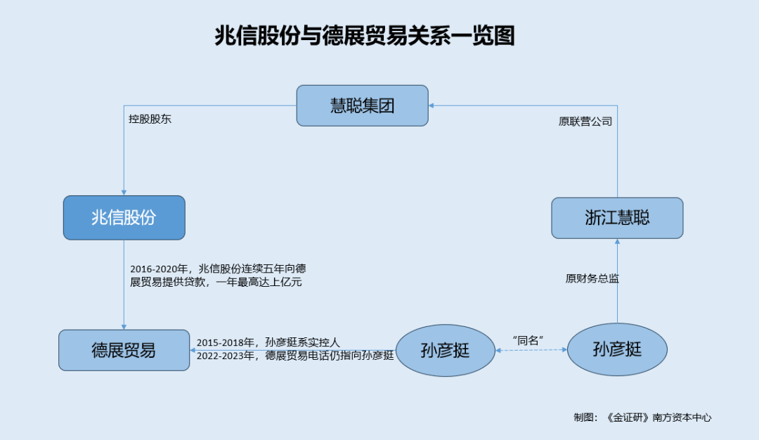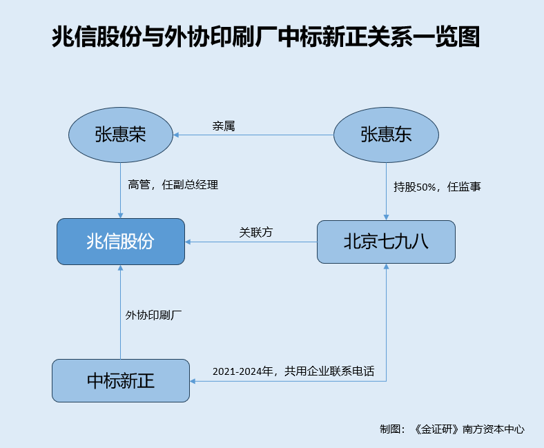 《金证研》南方资本中心 池恩*DL&BR/作者 易溪 南江 映蔚/风控 回溯历史,北京兆信信息技术股份有限公司(以下简称“兆信股份”)成为香港联合交易所上市公司慧聪集团有限公司(以下简称“慧聪集团”)控股子公司已超十年。自上市申请获受理至2025年5月22日已将近两年时间,兆信股份申报北交所上市进程处于上会阶段。对于兆信股份拟于北交所上市,慧聪集团表示不会导致分拆上市。 作为港股上市公司的子公司,兆信股份曾连续五年向一家非关联方企业提供借款,其中2020年累计金额高达1亿元。研究发现,该借款方的实控人与兆信股份控股股东原联营公司的昔日财务总监“同名”。此外,兆信股份外协印刷厂商与高管张惠荣亲属控股的企业共用电话,关系或待解。 一、曾连续五年向非关联方提供借款累计金额超亿元,借款方原实控人与控股股东原联营公司的昔日财务总监“同名” 资金占用问题是上市公司稳健运营“绕不开”的问题之一。作为港股上市公司的子公司,兆信股份曾连续五年向一家非关联方企业提供借款,累计金额超亿元。期间,该借款方存在曾多次赶在6月末、12月末还款,次月又再继续向兆信股份借款的情形。然而研究发现,德展贸易历史股东与兆信股份最终控股股东慧聪集团原联营企业的原财务总监“同名”。 1.1 曾连续五年向非关联方德展贸易提供借款累计超亿元,德展贸易多次年末归还并于次年1月再借款 据兆信股份签署于2023年5月20日的招股说明书(以下简称“2023年5月20日签署的招股书”)以及签署于2024年6月24日的向不特定合格投资者公开发行股票并在北京证券交易所上市申请文件的审核问询函的回复(以下简称“2024年6月24日首轮问询回复”),2014年,兆信股份成为香港联合交易所上市公司慧聪集团的控股子公司。 截至签署日2024年6月24日,慧聪再创直接持有兆信股份64.2%的股份,系兆信股份控股股东。慧聪再创系慧聪集团的间接控股100%的子公司。其中,由于慧聪集团股权结构分散,慧聪集团无控股股东和实际控制人。因此,慧聪集团系兆信股份的最终控股股东。 换言之,2014年至今,兆信股份均系联交所上市公司慧聪集团的控股子公司。 据签署于2016年9月26日的第三届董事会第三次会议决议公告,2016年,兆信股份董事会审议通过向余姚德展贸易有限公司(以下简称“德展贸易”)发放借款的议案,金额为3,000万元,期限3个月,年利率7%,由内蒙古呼和浩特金谷农村商业银行股份有限公司乌兰察布支行协助办理此笔委托贷款业务。 据兆信股份2017-2019年各年度报告及2024年6月24日首轮问询回复,2017年2月21日至6月28日、7月17日至12月15日,兆信股份分别向德展贸易提供借款,金额均为3,000万元,借款利率均为7%。截至2017年年末,上述借款已归还。 2018年1月15日至6月28日、7月27日至12月24日,兆信股份均向德展贸易提供借款,金额均分别为4,000万元,借款利率均为7%。截至2018年年末,上述借款已归还。 2019年1月29日至6月28日、7月26日至12月31日,兆信股份均向德展贸易提供借款,金额均分别为4,000万元,借款利率均为8.5%。截至2019年末,上述借款已归还。 2020年,兆信股份与招商银行(600036)股份有限公司佛山分行及德展贸易签订委托贷款借款合同,合同期限分别为2020年1月21日至2021年1月20日、2020年7月20日至2020年12月30日、2020年8月18日至2020年12月30日,合同金额分别为4,000万元、4,000万元、2,000万元,借款利率均为8.5%。截至2020年末,上述借款已归还。 对于2020年的委托借款,兆信股份表示,2020年受宏观经济波动影响,德展贸易业务受到较大不利影响,导致流动资金短缺,后经行业内朋友介绍,德展贸易委托招商银行佛山分行向兆信股份以年利率8.5%进行委托贷款,用于补充流动资金。 且兆信股份在年报中称,兆信股份与德展贸易无关联关系。 若按次数核算借款总额,则经测算,2016-2020年,兆信股份为德展贸易提供借款金额总计分别为3,000万元、6,000万元、8,000万元、8,000万元、10,000万元。 而这背后,2016-2020年末,兆信股份的货币资金金额分别为4,260.08万元、733.34万元、4,849.48万元、7,980.88万元、10,329.68万元。同期,兆信股份期末现金及现金等价物余额分别为4,260.08万元、733.34万元、4,849.48万元、7,980.88万元、10,329.68万元。 不难发现,2016-2020年,兆信股份均曾为德展贸易提供数千万元借款。其中,2017-2019年,德展贸易均赶在6月末、12月末前归还借款,然而归还1个月左右,又再重新借款。 关于德展贸易的股东背景或值得关注。 1.2 德展贸易原控股股东孙彦挺,与控股股东昔日联营公司浙江慧聪的原财务总监“同名” 据市场监督管理局数据,德展贸易成立于2015年10月27日。变更信息显示,成立起至2018年9月10日,孙彦挺均系德展贸易股东之一,持股比例为80%。2018年9月11日,孙彦挺不再持股德展贸易。而后2019年1月25日截至查询日期2025年5月22日,德展贸易的股东为钟文兵、牟方明,持股比例分别为20%、80%。 2022-2023年,德展贸易的企业联系电话均为13*******60。 据支付宝平台信息,截至查询日2025年5月22日,电话13*******60对应账号的实名认证信息为“孙*挺”。 由上可知,成立起至2018年9月,孙彦挺系德展贸易的控股股东。孙彦挺于2018年9月退出德展贸易。然而,2022-2023年,德展贸易的企业联系电话持有人或指向孙彦挺。 据宁波富佳实业股份有限公司签署于2021年11月10日的首次公开发行股票招股说明书,截