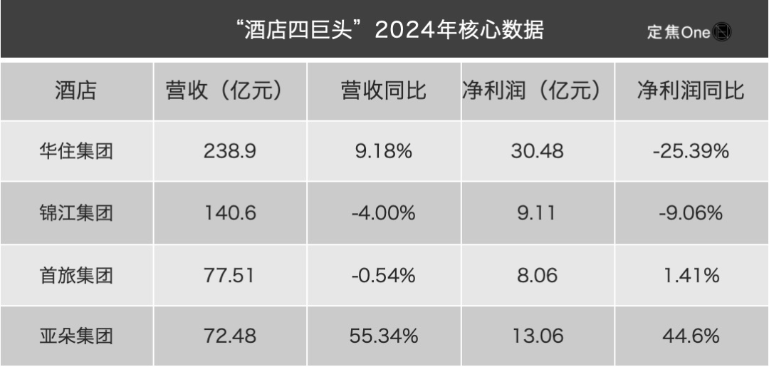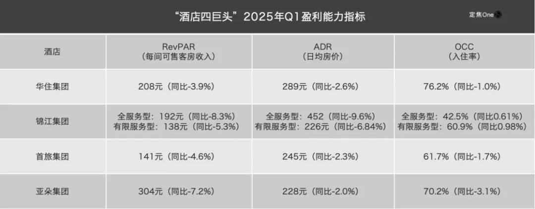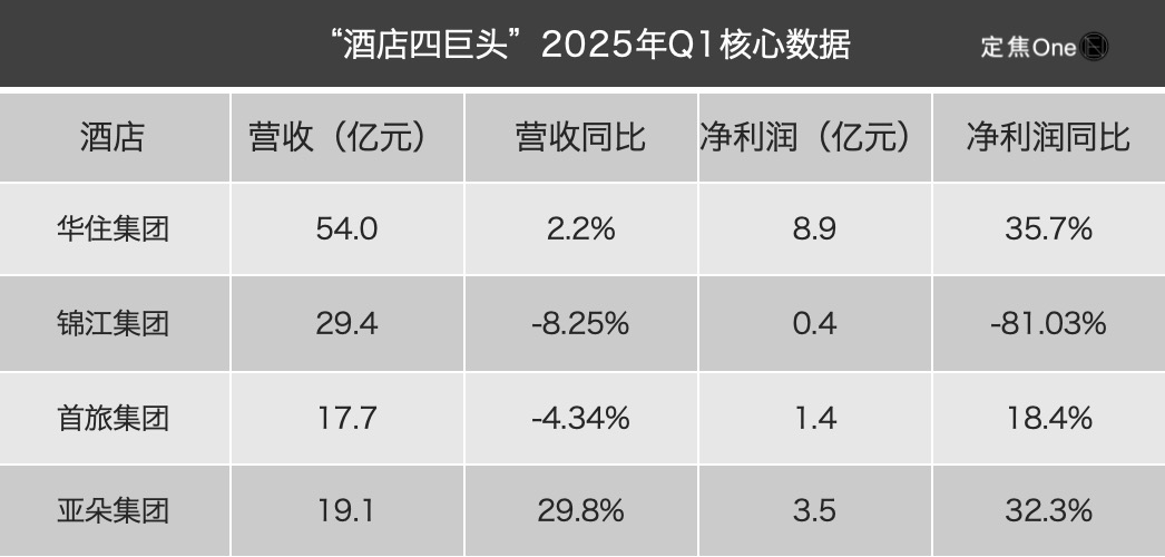 华住亚朵“枕头大战”,锦江首旅困在“老路”。 定焦One(dingjiaoone)原创 见习作者 | 何欣欣 编辑 | 金_[ 在行业整体规模狂飙突进的背景下,中国酒店业正上演一场“冰火两重天”的大戏。华住、锦江、首旅、亚朵四大集团,虽同处复苏赛道,却走出了截然不同的轨迹,今年一季度的业绩表现与战略选择日益清晰。 华住靠轻资产模式稳中承压。它有庞大的网络(11685家门店)和极高的加盟占比(94.7%),2025年Q1以54亿元营收和8.9亿元净利润维持首位。但其营收增速已显著放缓至2.2%,净利润同比增长35.7%。华住虽试水零售,但投入谨慎,其增长核心仍依赖加盟。 体量最小的亚朵(1727家门店)以差异化和零售破局,2025年Q1成为四巨头中唯一实现“营收利润双高增”的玩家。2024年零售收入占比已跃升至30.3%,2025年Q1零售收入增长66.5%至6.94亿元。不过,它为此付出了销售费用激增61.7%的代价。 传统巨头锦江(13513家门店)与首旅(7080家门店)则深陷增长困境。锦江核心中低端业务持续下滑,高端业务和国际业务难挑大梁,会员体系效率低下拖累成本。首旅押注会员增长和“景区+餐饮”,但成效尚不显著。 全行业在规模扩张的同时,普遍面临“量增价减”的压力。华住、亚朵凭借高入住率维持运营效率优势,而锦江、首旅在入住率和房价上均显乏力。这说明,酒店巨头已经不能单纯依赖规模或传统路径。 接下来,酒店业四大巨头的看点在于,华住能否加速精细运营以抵御增速放缓?亚朵零售增长的同时能否保持盈利质量?而锦江与首旅又能否在会员、高端突破或是其他维度找到新的增长点? 四巨头: 锦江失速,亚朵猛冲 在酒店业全面复苏的当下,行业发展可谓“冰火两重天”。 酒店之家数据显示,全行业2014年规模酒店净增长近三万家,总量突破37万家,创下近五年扩张之最。在这场存量博弈与增量扩张并行的竞争中,华住、锦江、首旅、亚朵四大集团展现出截然不同的发展轨迹。 从2025年一季度的营收体量来看,华住以54亿元的营收、8.9亿元的净利润,居于首位,但营收增速降到2.2%(2024年是9.2%),已显疲态。 与之形成对比的是亚朵集团,营收体量虽只有19.1亿元,但凭借将近30%的营收增速,以及从2024年至今30%以上的净利润增速,成为四家中唯一一个“营收和利润双指标大幅增长”的玩家。 而传统巨头锦江和首旅则陷入增长困境。 特别是锦江,作为国内规模最大的酒店集团,截至2025年Q1,有13513家门店,当季营收为29.4亿元,体量位于第二,但净利润只有0.4亿元,且营收、净利润分别下降8%、81%,规模优势没能转化成增长动力。 首旅集团门店数7080家,今年一季度营收同比下降4.3%,净利润同比增长18.4%至1.4亿元。 业绩分化背后,是经营策略的分野。 举例来说,华住在规模占优的基础上,通过“加盟店占比94%”的轻资产模式持续扩张,换来了相对稳健的业绩。 亚朵则在中高端市场另辟蹊径,其436.8元的ADR(日均房价)显著高于行业均值,尽管门店规模仅1727家,但单店产出能力突出,2024年加盟业务收入41.5亿元,同比增长53.3%,成为主要增长点。 而首旅和锦江在规模化和差异化赛道均不占优势,业绩相对平淡。 一些关键运营指标更揭示出了竞争的残酷。 根据酒店之家数据,2024年全行业的RevPAR(每间可售客房收入)同比下降9.7%至118元;ADR(日均房价)为200元,同比减少5.8%;OCC(入住率)为58.8%,同比下降2.5%。 四大酒店的RevPAR排序是,亚朵(351元)>华住(235元)>首旅(167元)>锦江(157元)。四家与上一年同期相比均下降明显,下降区间从3.0%到6.8%。 四大酒店的ADR(日均房价)也均面临下滑。亚朵为437元(同比-5.8%)、首旅为245元(同比-2.3%)、华住为289元(同比-3.2%)、锦江为241元(同比-4.4%)。 在OCC方面,华住集团、亚朵酒店表现尚佳,入住率分别为81.2%、77.4%,均比同行高出1-2成。锦江和首旅也在行业基准线之上,分别为65.4%和68.2%,同比微降0.9%、0.6%,不过,与前两者对比还有一定差距。 来到今年一季度,仅亚朵的RevPAR保持304元的高位。 而经济型酒店阵营内部分化加剧。华住凭借76.2%的入住率(OCC)维持运营效率优势,其RevPAR 208元虽同比下降3.9%,仍显著高于锦江、首旅。 尤其是,占锦江93.5%门店量的经济型酒店RevPAR降幅达7.9%,折射出该细分市场的过度竞争。 卷零售: 亚朵加码、华住观望? 当行业RevPAR持续下行成为常态,大多数玩家延续传统打法,即扩大门店规模、压低房价,华住和亚朵,找到了两条寻求增长的路径:华住以93.9%加盟占比守住规模经济,亚朵则试图用30.3%零售换取整体增长。 先来看亚朵抓住的这根新稻草――“卖枕头”。 值得一提的是,这条路不是亚朵最先发现的。国内第一家“卖枕头”的酒店是开元集团。开元早在2014年和奇高科技合作推出了“兰叙”品牌床品,顾客在开元酒店的睡眠体验不错,可以直接扫码将床品买回家。后来,兰叙品牌逐渐独立运营,不仅为开元自有酒店服务,还逐步拓展至洲际、万达、豪生等第三方酒店集团。 开元的尝试或许给了亚朵灵感,但不同于开元瞄准酒店的“体验式消费”,亚朵走的是另一条路。 亚朵早在2021年推出“亚朵星球”品牌,将床品零售(枕头、深睡被、眼罩等)作为重点业务,但它的零售业务不依赖线下酒店,90%来自线上渠道(通过天猫、京东、抖音等平台销售)。 2024年财报显示,其零售占比从20.8%增加到30.3%;酒店管理(含加盟及自营酒店)营收占比从58.0%微降到57.3%,仍是主业。 图源 / 亚朵集团2024年财报 