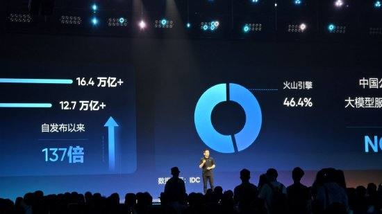 仟茂科技讯 6月11日上午消息,今日举办的火山引擎FORCE原动力大会现场,火山引擎总裁谭待表示,截至今年5月底,火山引擎豆包大模型tokens日均调用量已经达到16.4万亿,是发布时的137倍。根据IDC市场数据,火山引擎占据46.4%的市场份额。(罗宁) 责任编辑:杨赐 (责任编辑:张晓波 )