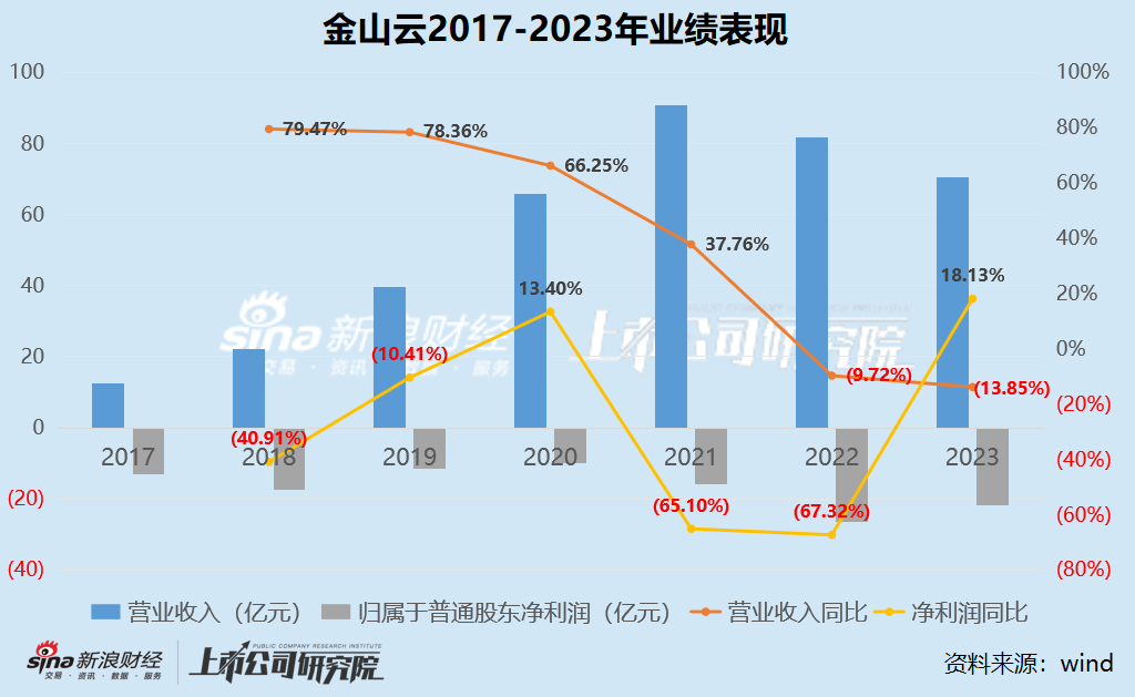 出品:新浪财经上市公司研究院 作者:坤 巨头云厂商的夹击下,中小云厂商仍在艰难求生。 自去年以来,主流互联网云厂商就开启了接连降价模式,价格战的打响也就意味着云服务竞争下半场进入了竞争更为激烈的“以价换量”阶段。而在这背后,各大互联网云厂商接连出招,竞相给出各式降价措施,甚至借助直播、互怼等手段层出不穷,而近年来增势正猛的运营商云也紧追不舍。 据IDC数据显示,整体市场增速相比以往仍在持续放缓中。2023下半年,中国公有云服务整体市场规模(IaaS/PaaS/SaaS)为204.8亿美元。其中IaaS市场规模为115.5亿美元,同比增速7.5%,环比增速2.3%;PaaS市场规模为36.5亿美元,同比增速为16.4%,环比增速10.1%。从IaaS+PaaS市场来看,2023下半年同比增长9.5%,中国公有云服务市场进入战略调整期。 当整个市场陷入“增长焦虑”,留给本就不占优势的中小云厂商、独立云厂商的蛋糕也就越来越小。以金山云、青云科技、优刻得为代表的中小云厂商在近年来也接连经历了收入规模缩水与持续亏损,盈利希望渺茫。 与优刻得、青云科技的表现相类似,金山云在过去一年也在继续收入下滑,仍陷于亏损中。2023年金山云实现营业收入81.80亿元,同比减少13.8%;同期实现净亏损21.84亿元,亏损有所收窄18.8%。但即便如此,近五年来金山云的累计净亏损也近90亿元。 更何况,金山云的公有云服务与行业云服务不仅收入双双下滑,且客户也持续流失,短短两年间合计优质客户数量流失超百位,每位客户平均收入也明显下滑。一直以来称为独立云厂商的金山云面对小米集团与金山软件却难言独立,收入与借款仍需仰仗后者。此外,常年亏损的金山云也难言“造血”能力,2023年公司现金净流出超10亿元。 收入持续缩水近5年累亏近90亿 短短两年流失超百位优质客户 从先于市场一步投身云计算,曾跻身行业前五,实现了纳斯达克与港股双重上市,到如今收入接连下滑,持续陷入亏损中,金山云所经历的不过短短数年。 据历年来披露的财务数据,2018-2021年是金山云的高速发展期,曾实现营业收入分别为22.18亿元、39.56亿元、65.77亿元、90.61亿元,同比增长率分别为79.47%、78.36%、66.25%、37.76%,每年保持两位数的稳定增长。 但高歌猛进在2022年戛然而止。2022年金山云仅实现营业收入81.80亿元,相比去年同期减少9.72%。2023年,金山云的收入缩水不仅并未停息,反而有加深趋势,仅实现收入70.47亿元,同比减少13.85%。 而在盈利能力方面,金山云也不容乐观,始终陷于亏损中,2023年实现净亏损21.84亿元,相比去年同期亏损有所收窄18.8%。但即便如此,近五年来金山云的累计净亏损也近90亿元。 为数不多表现较为乐观的是金山云的毛利率指标,2019年之前,金山云的毛利率一度为负数,而2019年之后,毛利率逐渐有所好转,转为正之后还有所上升。2023年,金山云的毛利率增至12.06%。 而从不同业务方面来看,金山云的业务主要分为公有云和行业云两个方面。公有云业务是为客户提供订阅模式下的标准化产品,基于客户的使用率和持续时间获得收入,产品更为标准化,而行业云业务类似于私有云与混合云,是以项目为单位,根据客户的需求在其本地基础设施上进行定制。 在近年来的业绩下滑中,金山云的公有云与行业云业务也经历了不同程度的下滑。2023年,金山云的公有云业务实现收入43.82亿元,同比减少18.26%,行业云业务实现收入26.64亿元,同比减少5.43%。对比来看,近两年公有云的缩水程度明显高于行业云。 而在财报中,金山云对业务下滑的解释依然是老生常谈的“由于主动缩减公有云服务的内容分发网络(CDN),以及更严格地选择行业云服务项目”。更何况,云服务赛道的逻辑本就是前期高额投入后逐渐扩大业务规模、增加客户数量,使得云厂商的成本逐渐摊薄、资源得到更有效的利用,云厂商得以拓宽盈利空间。然而金山云两项业务双双下滑,结合CDN业务本就产品同质化严重、竞争激烈,以及行业中巨头云厂商从去年以来就开始纷纷降价来争抢市场份额来看,或在一定程度上反映出金山云当前的竞争优势并不明显。 不仅收入明显下滑,金山云两项业务的客户表现也不容乐观。据财报显示,公有云服务、行业云服务的优质客户数量均有所下滑。截至2023年底,公有云服务的优质客户数量为214家,尽管相比去年同期有所增加,但相比2021年仍减少了8家;而行业云服务的优质客户数量则持续下滑,从2021年的382家到2023年底的285家,短短两年净流失了近100家客户。 资料来源:公司公告 更何况,不仅客户在持续流失,金山云的客户平均收入也明显减少,总体每位优质客户的平均时候入从2021年的1700万元降至2023年的1420万元。 亏损收窄背后是外调员工、持续控费 仍依赖小米、金山软件 与青云科技、优刻得近年来表现相类似,金山云在收入明显下滑的同时却实现了亏损收窄的背后,离不开对各项费用的压缩。 据财报显示,2023年金山云的销售及营销费用为4.60亿元,相比去年减少17.86%;一般及行政费用为10.60亿元,相比去年减少7.8%;研发费用为7.85亿元,相比去年的9.71亿元减少19.19%,在各项费用中,下滑幅度最高。 研发费用减少近20%的背后,主要是由于金山云在过去一年中对其研发人员的调动。据财报显示,金山云在建设北京-武汉双研发中心,通过核心研发人员自愿从北京调动以及武汉本地招聘,金山云的武汉团队已经发展到500多人(包括外聘人员和实习生