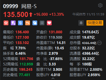 11月15日消息,今早港股三大指数止步五连跌,截至午间收盘,恒生指数涨0.26%,报19486.97点,恒生科技指数涨0.9%,国企指数涨0.4%。盘面上,科网股多数上涨,网易绩后大涨13%,哔哩哔哩跌超10%;苹果概念股涨势活跃,舜宇光学科技涨超5%;黄金股涨幅居前,中国黄金国际涨超11%;中资券商股普遍走低,华泰证券(601688)跌3%。 网易绩后大涨13%。网易发布2024年第三季度业绩,净收入为262亿元(人民币,下同),其中,游戏及相关增值服务净收入为209亿元;有道净收入为16亿元,同比增加2.2%;网易云音乐净收入为20亿元,同比增加1.3%;创新及其他业务净收入为18亿元。毛利润为165亿元,归属于公司股东的净利润为65亿元。 哔哩哔哩绩后跌超10%。哔哩哔哩第三季度的净营业额总额达到了73.06亿元,与去年同期相比增长了26%。毛利润达到25.47亿元,同比增加了76%。毛利率也从去年同期的25.0%增长至34.9%,显示出公司运营效率的显著提升。尽管净亏损为0.79亿元,但与去年同期相比,亏损幅度已经大幅收窄了94%。值得注意的是,经调整净利润达到2.36亿元,而去年同期经调整净亏损为8.63亿元,这一转变标志着季度首次实现盈利。 黄金股涨幅居前,中国黄金国际涨超11%。 中国黄金国际发布公告,2024年第三季度,收入同比增加309%至2.546亿美元;矿山经营溢利为4680万美元,与2023年同期的矿山经营亏损1430万美元相比增加6110万美元;净利润为2790万美元,与2023年同期的净亏损3080万美元相比增加5870万美元。 来源:仟茂网 (责任编辑:宋政 HN002)