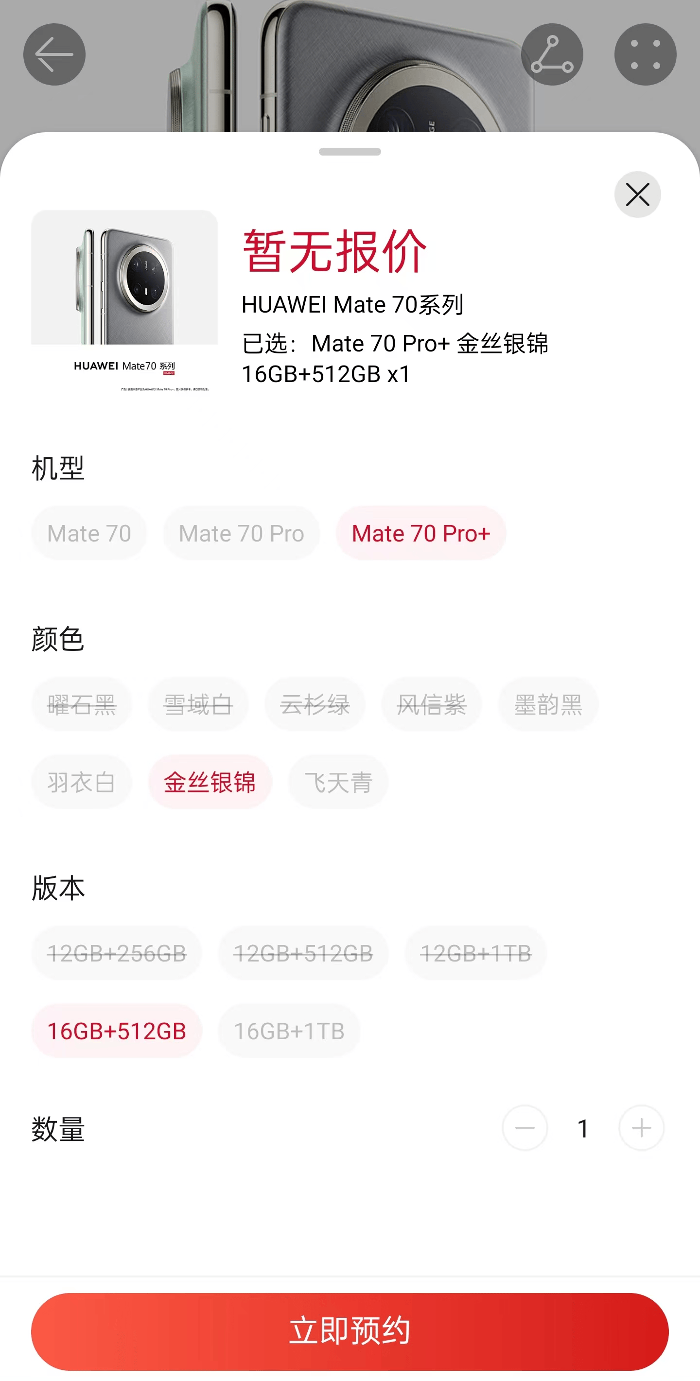 11月18日,“华为Mate 70来了”冲上微博热搜榜。 当日12:08,华为Mate70系列开启预订。时代周报记者注意到,预定通道开启后,不到五分钟,华为商城已有13.2万人预约,10分钟后预约人数达到了43.9万人,预约界面部分机型、颜色和版本已被清空。另外在京东渠道上,也有超过3.4万人预约。 图源:截图自华为官方商城 图源:截图自华为官方商城 华为线下门店的销售人员告诉时代周报记者,线下门店也在12:08分开启预订”0元预订“,目前仅提供产品意向登记,并不保证商品成功交付,需消费者到线下门店预订,不接受电话和企微预订。 Mate70发布会也正式定档。华为常务董事、终端BG董事长、智能汽车解决方案BU董事长余承东在微博上发文称:“大家久等了,11月26日14:30余承东视频号同步直播!”值得注意的是,这条发文末尾,账号所用的机型显示为“HUAWEI Mate 70 Pro+”。 截至12:08分,在华为官方商城里,已有89万人预约了11月26日的发布会。 图源:截图自华为官方商城 同时,为了给最新的Mate70预热,余承东还在近日开通了微信视频号,于11月18日发布第一条视频官宣Mate70的发布,称“史上最强大的Mate”将于11月26日发布,届时将在该视频号直播。 另外,在此前的2024广州车展上,余承东除了“剧透”华为和江淮联手打造的百万级品牌“尊界”首车外,也“说漏嘴”了Mate70的发布时间。为给Mate70造势,余承东可谓下足了马力。 据市场消息,Mate 70系列或将出厂首发搭载“纯血鸿蒙”操作系统,并在影像、AI、性能等方面实现全面提升。外观设计上,华为Mate70系列基本确定采用三摄像头设计,而在性能方面,新机有望搭载麒麟9100处理器。 今年以来,华为消费电子业务吹响复苏号角。IDC数据显示,今年第三季度,华为市场份额为15.3%,位居第三。回归以后连续四个季度同比增长幅度达到两位数。随着产品促销力度的加大,在新品较少的情况下,华为占据4000-8000元市场份额第一。Mate70系列若能延续热销势头,将为华为的消费电子业务再添一把火。 (责任编辑:董萍萍 )