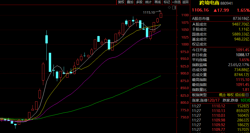 今日早盘,A股有所调整,截至收盘,沪指跌0.99%,深成指跌0.91%,创业板指跌1.09%。白马蓝筹股整体走弱,上证50指数盘中一度快速下跌逾1%,带动其他股指走弱,科创50指数再失1000点大关。 盘面上,可控核聚变、超导概念、人工智能、跨境电商等板块涨幅居前,煤炭、保险、医药、钢铁等板块跌幅居前。 跨境电商迎政策利好 跨境电商概念早间逆势上扬,板块指数高开高走,一度放量大涨逾2%,创近4年来新高,并逼近历史最高点。 板块内个股掀起涨停潮,太湖雪、华光源海双双30%涨停,并齐创历史新高;贝仕达克垂直20%涨停,连续第2日封板块;海宁皮城(002344)、爱仕达(002403)等逾20股亦强势涨停或涨超10%。 网红经济、阿里概念、商贸代理、跨境支付等相关板块也逆势上攻,焦点科技、遥望科技、南极电商(002127)、日出东方(603366)等批量涨停。 港股电商概念也跟随上涨,电子商贸指数逆势飘红,傲基股份、国美零售、京东集团等涨幅居前。线上消费ETF盘中放量大涨逾3%,一度位居ETF涨幅榜榜首。 消息面,商务部国际贸易谈判代表兼副部长王受文11月22日在新闻发布会上表示,目前中国已经签署的自由贸易协定有23个,有的签得比较早。在最近签的双边自贸协定,或者正在升级的过去的自贸协定中,都把跨境电商作为一个新的条款纳入到双边自贸协定中,推动我们和有关自贸协定国家跨境电商的发展。同时,中国作为世贸组织的重要成员,我们也在积极推动世贸组织关于电子商务协定谈判,我们希望世贸组织电子商务协定谈判能够早日结束。这样我们能够和更多WTO成员,为跨境电商提供更好的发展环境。 此前,商务部发布《促进外贸稳定增长若干政策措施》,要求持续推进海外智慧物流平台建设。支持有条件的地方探索建设跨境电商服务平台,为企业提供海外法务、税务资源等对接服务。加大对外贸企业的融资支持力度,优化跨境贸易结算。 《措施》提出,中国进出口银行要加强外贸领域信贷投放,更好适应不同类型外贸企业融资需求。鼓励银行机构在认真做好贸易背景真实性审核、有效管控风险的前提下,在授信、放款、还款等方面持续优化对外贸企业的金融服务。鼓励金融机构按照市场化、法治化原则,对中小微外贸企业加大融资支持力度。 《措施》支持外贸企业与航运企业加强战略合作。加大对外贸企业减负稳岗的支持力度,按规定落实失业保险稳岗返还、创业担保贷款及贴息等政策,大力推广“直补快办”经办模式,降低企业经营成本。将重点外贸企业纳入企业用工服务保障范围,加强人社专员指导服务。 今年以来,我国对跨境电商从贸易、金融、税收等各个面给予重磅政策支持,推动行业快速发展。据海关总署初步统计,2024前三季度,我国跨境电商进出口1.88万亿元,同比增长11.5%,环比上半年增速10.5%有所提升,并高于同期我国外贸整体增速6.2个百分点。 东兴证券指出,全球通胀背景下消费者的消费行为将更为理性,更注重性价比,为消费的线上化转移和物美价廉的优质国货品牌提供良好发展机遇,整体看好跨境电商行业增长以及优质国货品牌的出海表现。 人工智能领涨科技股 科技股今日依旧炽热,人工智能方向领涨,板块指数连续第4日放量上涨。星辉娱乐(300043)、立方数科、拓尔思(300229)等多股20%涨停,天娱数科、智能自控(002877)、竞业达、魅视科技等逾10股涨停或涨超10%。 AIGC概念、ChatGPT概念、多模态AI、智谱AI等板块亦涨幅居前,奥拓电子(002587)、佳都科技(600728)、鸿博股份(002229)、二六三(002467)等批量涨停。 可控核聚变、超导概念、云计算、区块链等尖端科技板块也保持稳步上扬态势,海陆重工(002255)、东方精工(002611)、永鼎股份(600105)、融发核电等涨停。 港股人工智能概念也放量大涨,恒生科技指数、中国元宇宙指数、恒生资讯科技业指数等均强势上攻。瑞声科技、小米集团-W、心动公司等涨幅居前。 消息面,在今日上午举行的国务院政策例行吹风会上,工业和信息化部运行监测协调局负责人何海林表示,研究出台制造业数字化转型行动方案和推动人工智能赋能新型工业化行动方案,建设一批智能工厂和智慧供应链,大力发展智能物流装备。 此外,在昨日的2024年世界互联网大会乌镇峰会“人工智能赋能新质生产力发展”分论坛上,工业和信息化部副部长张云明表示,我国人工智能产业蓬勃发展,产业体系逐步完善,企业数量已超过4500家,智能芯片、开发框架、通用大模型等创新成果不断涌现。 张云明表示,人工智能基础设施加快布局,云算智算超算等协同发展,算力规模位居全球第二名。东数西算等重大工程加快推进,5G基站超过400万。 IDC调研报告指出,亚太地区2025年―2026年将进入到AI转型的“采用阶段”,2027年及以后将加速开启AI赋能型企业的阶段。未来五年亚太地区AI支出将保持24%年复合增长率。 中信建投称,近几个月北美新一代生产力工具相关标的业绩普遍超预期,促使股价快速上涨,已经反映出AI应用商业化价值。随着AI技术的不断迭代,同时更多的开发者和用户构建起产品生态,新一代生产力工具有望成为用户主流选择,迎来非线性增长的拐点。而从国内客户群体看,面向C端用户的产品更多,而B端产品商业化落地更快,预计国内B端新一代生产力企业将率先迎来业绩增长。 本文首发于微信公众号:e公司。文章内容属作者个人观点,不代表和讯网立场。投资者