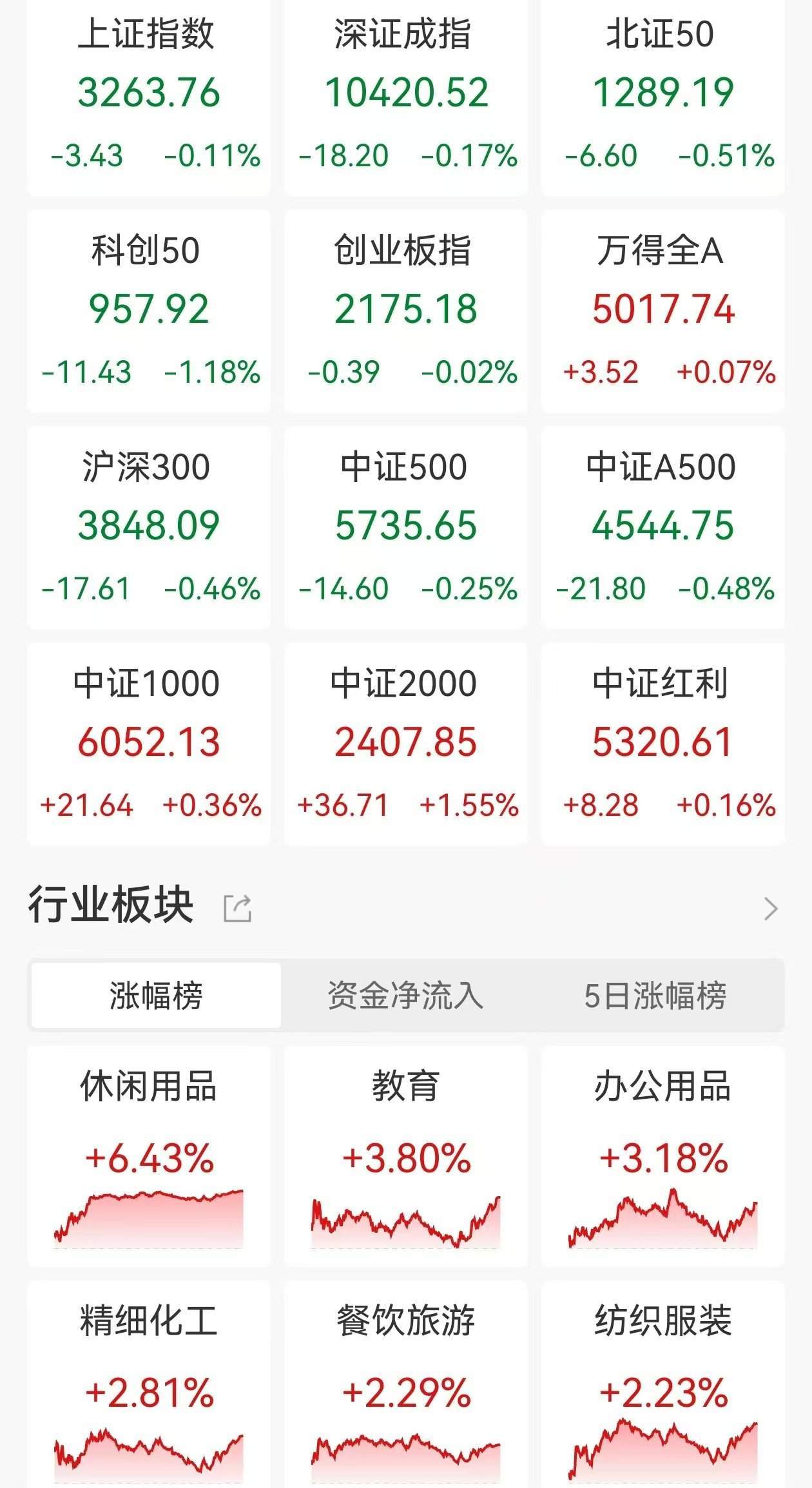 格隆汇11月25日|A股主要指数今日震荡走低,尾盘收窄跌幅;截至收盘,沪指跌0.11%报3263点,深证成指跌0.17%,创业板指跌0.02%。全天成交1.52万亿元,较前一交易日缩量3108亿元,全市场超3700股上涨。 盘面上,盲盒经济板块走高,奥飞娱乐(002292)涨停;AI制药板块活跃,理邦仪器(300206)20%涨停;纺织服装板块走强,三夫户外(002780)等多股涨停;中国对日本等9国试行免签,旅游酒店板块拉升,凯撒旅业涨停;固态电池、短剧概念及教育等板块涨幅居前。另外,贵金属板块走低,晓程科技跌超5%;航空机场股普跌,洪都航空(600316)跌超6%;核污染防治、可控核聚变板块走弱,融发核电领跌;天基互联、华为欧拉及6G概念等跌幅居前。(格隆汇) (责任编辑:宋政 HN002)