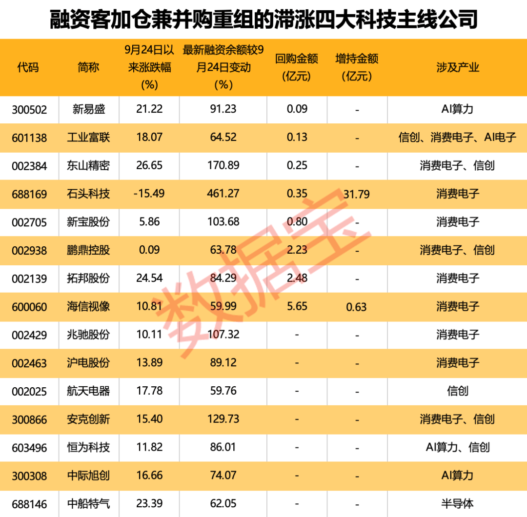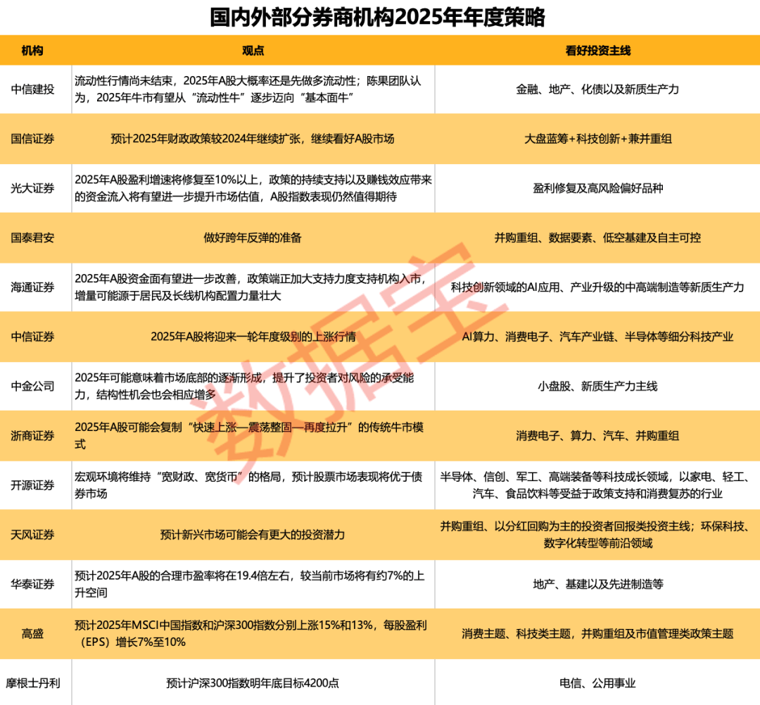 数据是个宝 数据宝 投资少烦恼 券商机构年度策略展望纷纷出炉,A股右侧行情可期。 11月26日晚间,赛力斯公告,公司拟发行股份购买龙盛新能源100%股权,此次交易构成重大资产重组。11月26日,公司收到上交所通知,此次重大资产重组相关申请获得受理。此次交易尚需上交所审核通过以及中国证监会同意注册后方可实施。 根据最新披露并购报告书申报稿,赛力斯拟以66.39元/股向重庆产业母基金、两江投资集团、两江产业集团发行约1.23亿股股份、总价81.64亿元收购这三者所持龙盛新能源100%股权,发行股份数占本次发行股份购买资产后赛力斯总股本的7.53%。 龙盛新能源是两江新区龙兴新城智能网联新能源汽车产业园基础设施配套项目的实施主体,是专门为服务新能源汽车生产制造成立的项目公司,其主要资产为生产新能源汽车所需的土地、房产、基础设施及相关配套设施,该等资产打造了智能电动汽车工厂。 截至11月26日,公司自9月24日以来股价涨幅超50%,最新市值超过1800亿元,收购龙盛新能源后,公司总规模有望站上新台阶。 机构对2025年的市场 普遍持有乐观预期 11月26日,中信建投(601066)证券2025年度资本市场峰会在上海举行。会场上,中信建投证券新任总经理金剑华发表致辞。 金剑华表示,我国经济持续巩固向好和新质生产力的加速发展,推动上市公司盈利中枢和估值中枢不断抬升,以优质龙头科创企业和央国企为引领,资本市场投资价值回报能力将不断提升,经济运行态势明显向好,资本市场回升势头尤为显著,社会预期特别是投资者信心也显著增强。 时值岁末,国内外机构纷纷启动对2025年的年度宏观以及策略展望。 据证券时报・数据宝统计,包括中信建投在内,国信证券(002736)、国泰君安(601211)、中信证券(600030)、中金公司等在内的10余家机构(含首席经济学家)普遍给予A股2025年行情乐观预期,且多家机构认为我国中长期经济有很大潜力。 比如,中信建投表示流动性行情尚未结束,2025年A股大概率还是先做多流动性。中信建投策略陈果团队发布最新研究报告称,中期继续看好中国股市“信心重估牛”,且认为随着政策逐步加码展开与见效,2025年牛市有望从“流动性牛”逐步迈向“基本面牛”。 国泰君安认为,预计有机会的震荡行情还会持续,跨年反弹行情可期。 信达证券表示,市场震荡休整,本质上可能是很多短期博弈性资金的降温,不过由于长期资金和政策方向的转变,指数的中枢很难跌回原点。 另外,海外的高盛、摩根士丹利对A股也给予看多预期。高盛预计2025年沪深300指数上涨13%;摩根士丹利预计沪深300指数2025年年度目标点位4200点。 重点看好两大投资主线 从上述机构的年度策略进一步梳理显示,以半导体、算力为主的新质生产力,以及以并购重组、市值管理为主的政策类主题获多家机构重点看好。 国信证券表示,长期视角下,大多数成长型的企业会演变为价值型的公司,供需格局视角下稳定的龙头企业占优,看好大盘蓝筹+科技创新+兼并重组。 国泰君安2025年度策略推荐主题包括并购重组、数据要素、低空基建及自主可控。 中信证券年度策略推荐主题包括AI算力、消费电子、汽车产业链、半导体等细分科技产业。 海通证券表示,展望2025年,市场中期主线将逐渐明晰,基本面更优的科技制造和中高端制造可能成为明年股市的行业主线。 除上述两大主线外,也有机构认为,随着经济的修复式增长,以消费电子以及食品饮料等为主的传统消费也有望获得资金的关注。 15只融资客加仓+兼并重组的 滞涨潜力股出炉 根据以上观点,目前A股市场涉及的信创、半导体、消费电子、AI算力板块的公司共383家;9月24日至11月26日以来,累计呈现下跌的个股仅有5只,主要属于信创及消费电子板块。 涨幅居前的以AI算力、半导体行业公司为主,翻倍股接近30只,其中半导体公司寒武纪-U9月24日以来涨幅接近130%,公司同时涉及消费电子、AI算力概念;中科曙光同时涉及信创及AI算力概念,9月24日以来股价涨近110%。 从杠杆资金来看,与9月24日相比,最新融资余额(11月25日)增加的公司超过320家,188家公司获融资客加仓幅度超过50%,科创板、创业板多家公司获加仓超过100%,可见风险资金对“20cm”涨幅的公司偏好度增加。 进一步来看,上述383家公司中,9月24日以来跑输Wind科技指数(27.62%),且最新融资余额较9月24日加仓超过50%的公司仅有35家。按照首次公告日计算,今年以来参与并购重组(含定增,剔除失败案例)的公司仅有15家,涉及交叉概念的公司有鹏鼎控股、工业富联(601138)、东山精密等。 鹏鼎控股是全球最大PCB生产企业,服务客户包括苹果、华为、小米等公司。公司涉及消费电子及信创概念,9月24日以来,股价涨幅不足1%,融资客加仓近64%。今年8月14日,公司首次公告拟向子公司鹏鼎控股(002938)投资(深圳)有限公司增资2.5亿元。 东山精密涉及消费电子及信创概念,公司最新融资余额较9月24日增加170%以上;今年6月份公司首次公告拟向盐城维信电子有限公司增资3000万美元,目前该事项正在进行。 需要补充的是,上述15家潜力股中,有8家公司积极开启市值管理的一系列举措。截至11月26日,新易盛(300502)、工业富联、新宝股份等8家公司年内均完成一定金额的回购,其中石头科技年内回购0.35亿元,重要股东合计增持超31亿元;消费电子股海信视像年内回购金额超过5.5亿元,重要股东增持超过6000万元。 声