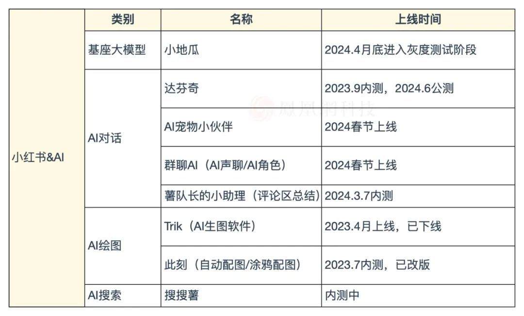 凤凰网科技《新视界》出品 作者|王丹宇 编辑|董雨晴 AI包围小红书 近来,不少小红书用户愈来愈多感受到平台上AI内容的含量。 一大批虚拟AI账号正在小红书上崛起,他们往往带有“虚拟女友”、“赛博天使”等类似的账号介绍,即便有些图片中会有平台“疑似包含AI创作信息”的标注,但仍有大量的用户与其进行互动,包括赞美以及针对妆容、服装,乃至照片滤镜的“求同款”。 这些AI图片的制作技术也已逐渐成熟,贴近真人的皮肤质感以及故意保留的细节瑕疵,都使其达到真假难辨的效果,这或许就是AI美女账号在小红书平台上获流容易,且难以遏制的原因。 因此还涌现了一个独特的“AI打假赛道”,即找出那些通过了平台审核却没有声明自己的图片来自于AI生成的“假博主”,并讲解如何分辨真人和AI图片,其中包括观察图片“有没有眼神光”等技巧。 除了AI美人,更有靠批量生产鸡汤文学走红的“AI奶奶”们,借助工具生成一组动漫奶奶形象,再让大模型列举一些清醒语录、大女主发言、温暖治愈话术等文案,借助简单的图片制作工具将二者结合后,就可以成功制造数位AI奶奶,在吸引到一定的流量后,就可以通过卖货、发广告等形式实现变现。 与这些AI内容生成不同的是,小红书平台上还有大量与AI知识相关的博主。如果你想学习利用AI写文案,你既可以找到诸如“6个好用又不花钱的写作神器”的AI工具科普贴,也能找到详细教程以及社群服务的学习贴,还能看到详细使用某项工具后的心得日记。 一大批AI行业从业者也把小红书当成重要的发声阵地。在此分享AI行业的前沿线索,并在短期内积累了一大批忠实粉丝。 对于以上两类内容,小红书官方可谓抱着“纠结”的态度,据《新视界》了解,从生态治理的角度,大量AI生成的内容需要得到有效的管控,但另一方面,小红书官方又希望与AI行业相关的内容能够占领相关人群的心智。 正如小红书副总裁许磊在2024乌镇世界互联网大会上表达的,AIGC(人工智能生成内容)大幅降低了内容创作门槛,但也带来了治理挑战。 小红书的思路解法是两手抓。目前,小红书已初步完成AIGC治理体系建设,将持续治理工作推进,守好“真实”的平台生命线。 平台悄悄推波助澜 实际上,这轮AI浪潮带来的机会小红书还是有意抓住。 首先是用新内容撬动新用户增长。今年10月后,小红书在站内连发两场AI相关的内容创作活动,直言“如果你也对AI有信心,欢迎把小红书当成入门第一站”。10月28日发布活动话题#我的AI好奇怪#,鼓励用户分享自身与AI互动趣事,出现诸如“当AI成了我的贴身太监”、“半夜被gpt骂”等热门帖子,11月9日再次发布活动话题#AI新手村#,用户可分享例如AI工具推荐,应用教程,原理知识科普,使用体验等干货内容。两个话题精准覆盖了想获得AI知识或者AI乐子的人群。 另一方面,在“万模大战”时代,小红书也不想只做局外人。 2023年3月,小红书已筹备了独立的大模型团队,核心员工来自广告业务的NLP技术团队,主要负责人为拥有多年AI和音视频算法算法相关从业经历的张德兵。当年10月,张德兵在小红书REDtech青年技术沙龙上分享,小红书大模型布局将主要围绕三个方向:一是多模态技术在小红书内部应用场景具体地落地。二是针对内容创作者,借助AIGC工具降本增效。三是更关注成本。 今年小红书已经开始在部分内部产品中,灰度测试自研通用大模型基座“小地瓜”。作为一个生活方式的内容社区,小红书目前AI产品分布主要侧重于对话的社交功能、绘图的内容生成功能以及搜索功能。 图|小红书已测试的AI产品一览表/凤凰网科技整理 在图片生成板块,小红书的动作最快。筹备独立的大模型团队后不久,就上线了一款叫Trik的App,主打中国风AI绘图,不过后续由于版权争议中途下线。下线后不久,小红书又迅速内测了AI配图“此刻”和涂鸦功能。用户可以通过输入文字或绘制涂鸦,由AI自动生成封面配图,目前站内已没有“此刻”模块,不过点击发布的“+”号,还是可以看到“文字”板块中的用文字以及涂鸦生成配图的功能。目前这一功能还是更偏向娱乐属性,其生图的模版往往比较简单,质量也偏低,难以完全匹配用户生产站内内容时的配图需求。 目前小红书投入测试产品最多的板块还是在AI对话上。既有偏向情感陪伴的“AI宠物小伙伴”,也有娱乐属性更强的“AI角色生成”和“AI声音扮演”,还有侧重用户内容整理与互动属性的“达芬奇”和“薯队长的小助理”。 “AI宠物小伙伴”是小红书基于MiniMax模型基座推出的社交陪伴功能,用户可以智能创建自己的宠物角色,有点像6年前停运的QQ宠物概念,不过玩法更多变,通过点击可与宠物进行抚摸等互动,可以带着宠物去拜访其他用户的宠物,在AI的加持下可与其进行对话,目前已解锁的功能还有宠物提醒每日星座运势,进一步贴合了社区里的内容氛围。基于小红书站内语料的大模型,的确会赋予宠物大量丰富、生活化的语料,机器人的实感没有那么强,然而一些主观性较强甚至情绪化明显语料会在用户互动中起到负面效果。 不少用户反映,在和AI宠物交流某些观点时,宠物会有一些负面邪恶的想法,甚至出现莫名其妙地发言,使其在情感陪伴上让人出戏。也有反馈指出当向其提问复杂问题时,宠物就会要求睡觉,主动结束对话。 被称为小红书版ChatGPT的“达芬奇”,在去年9月就开始内测,