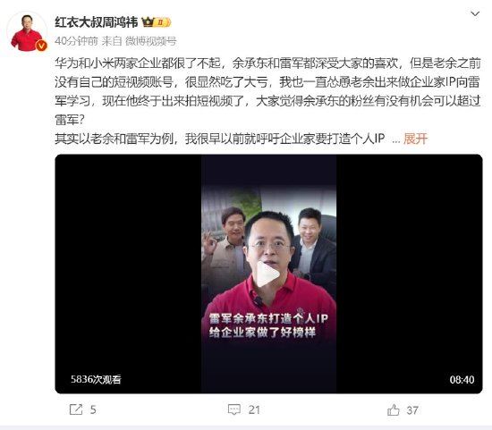仟茂科技讯 11月26日下午消息,360集团创始人周鸿t今日在微博发文称,自己很早以前就呼吁企业家要打造个人IP,而且一定要亲自下场,自己也下场试验各种做法,虽然出了不少错,丢了不少人,被大家笑话,但是替大家踩坑探路算是打个样板。这样企业家在做IP的时候,至少可以从自己这吸取经验教训。 “很多人嘲笑我不务正业当网红,其实我根本不是要当网红,我是要做流量,我觉得这样说我的人是完全不懂如何做企业,德鲁克说过企业家两大使命,一个是做出比较牛掰的产品,第二是让消费者知道,这样产品才能卖出去。”他举例,自己这一年做IP积累了千万粉丝,推广360AI搜索的效果很好。因为现在大家都已经不信广告了,投广告远不如企业家自己的流量转换效果好。 “希望企业家朋友们能继续弘扬企业家精神,学习用流量把企业经营好,把更多流量转化成正能量。在这个时代企业家不应该高高在上,应该从台子上面下来,跟用户交朋友,接受粉丝的批评和建议,这样也能提高自己心理的皮实程度。” (责任编辑:宋政 HN002)