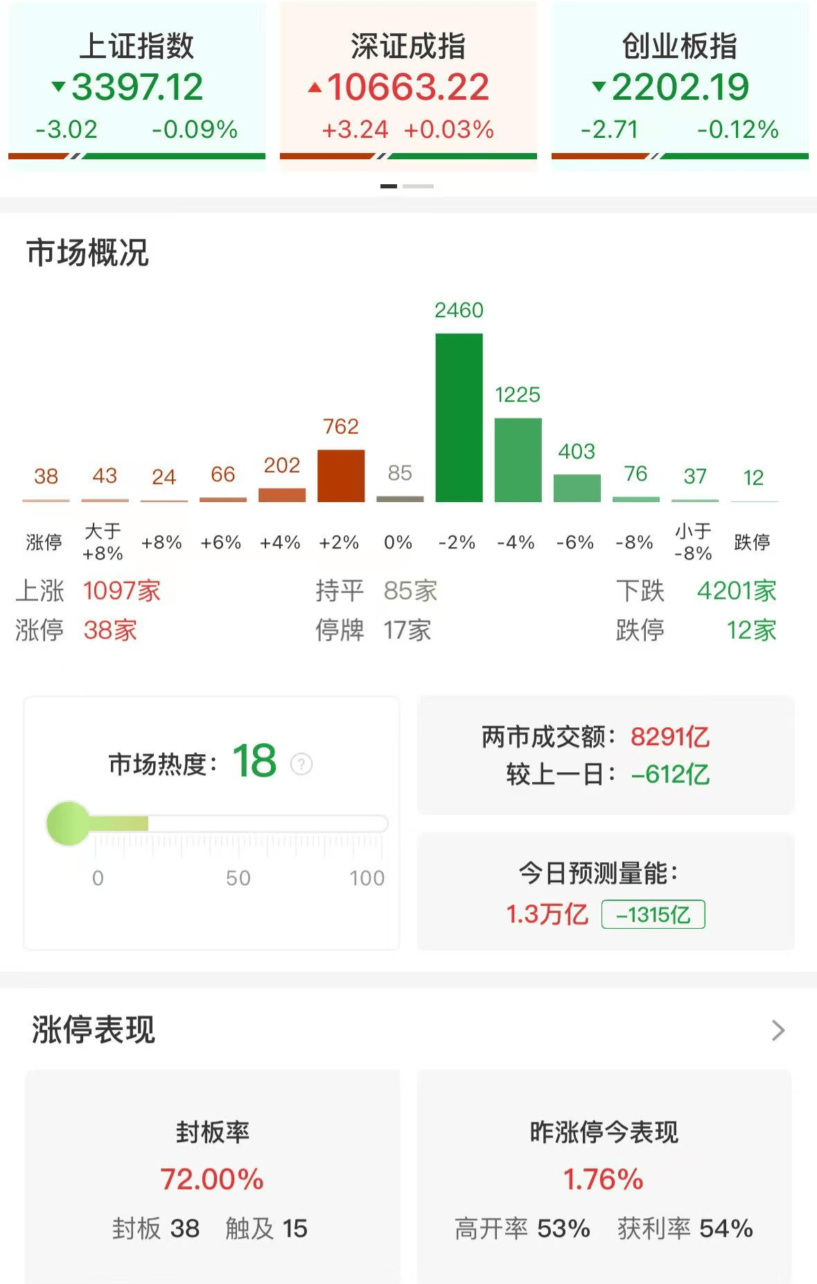 格隆汇12月30日|A股主要指数早盘涨跌不一,截至午盘,沪指跌0.09%报3397.12点,深成指涨0.03%,创业板指跌0.12%,北证50指数跌3.17%,微盘股指数跌2.18%。全市场半日成交额8364亿元,较上日缩量618亿元,超4200只个股飘绿。 盘面上,算力概念涨幅居前,电光科技7连板,中辰股份、安诺其(300067)等涨停,央视和国资委联合制作的大型系列纪录片《大国基石》第三期推出《算力引擎》,提及算力即国力;AI眼镜概念走强,创维数字(000810)一度走出5天3板,宝明科技3天2板,多家科技企业将于明年初发布AI眼镜新品;煤炭股普涨,安源煤业(600397)3连板,陕西煤业(601225)、晋控煤业涨超2%。农业股普跌,秋乐种业、康农种业、神农种业均跌超5%;旅游概念股持续走低,大连圣亚(600593)跌超8%,曲江文旅(600706)、三特索道(002159)跌超5%;饮料制造、房地产、医药商业等板块跌幅居前。(格隆汇) (责任编辑:宋政 HN002)