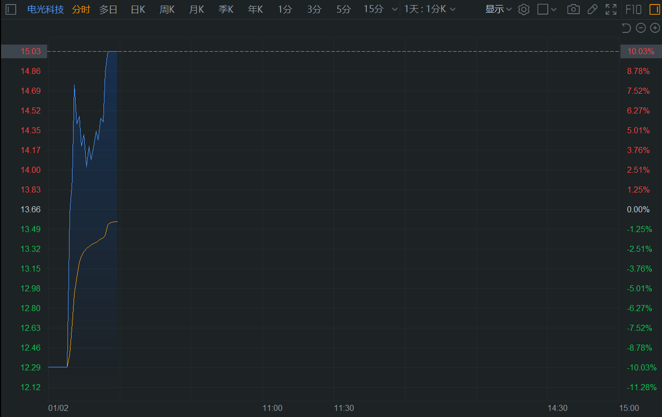 格隆汇1月2日|电光科技拉升涨停,上演“地天板”行情,走出9天7板,成交超8亿元。公司的主营业务为防爆电器、电力设备和电机的研发、生产和销售,主要产品为智能化装备及系统类、矿用防爆开关、电力设备、教育培训。 (责任编辑:宋政 HN002)