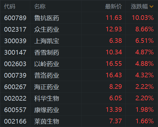 格隆汇1月6日|A股方面,鲁抗医药(600789)2连板,众生药业(002317)涨超8%,以岭药业(002603)、香雪制药(300147)、海正药业(600267)、普洛药业(000739)等跟涨;港股方面,东阳光(600673)长江药业涨超5%,山东新华制药(000756)涨超4%,和黄医药、凯莱英(002821)涨超2%。 消息面上,中国疾控中心最新数据,目前流感病毒阳性率持续上升,流感病毒阳性率“跃居第一”,其中99%以上为甲流。全国多地疾控紧急提醒。此外,北京市疾控中心对近期传染病形势做出说明,强调目前呼吸道传染病感染呈现上升趋势,其中,流感病毒感染预计在2025年1月上旬达到高峰。(格隆汇) (责任编辑:宋政 HN002)