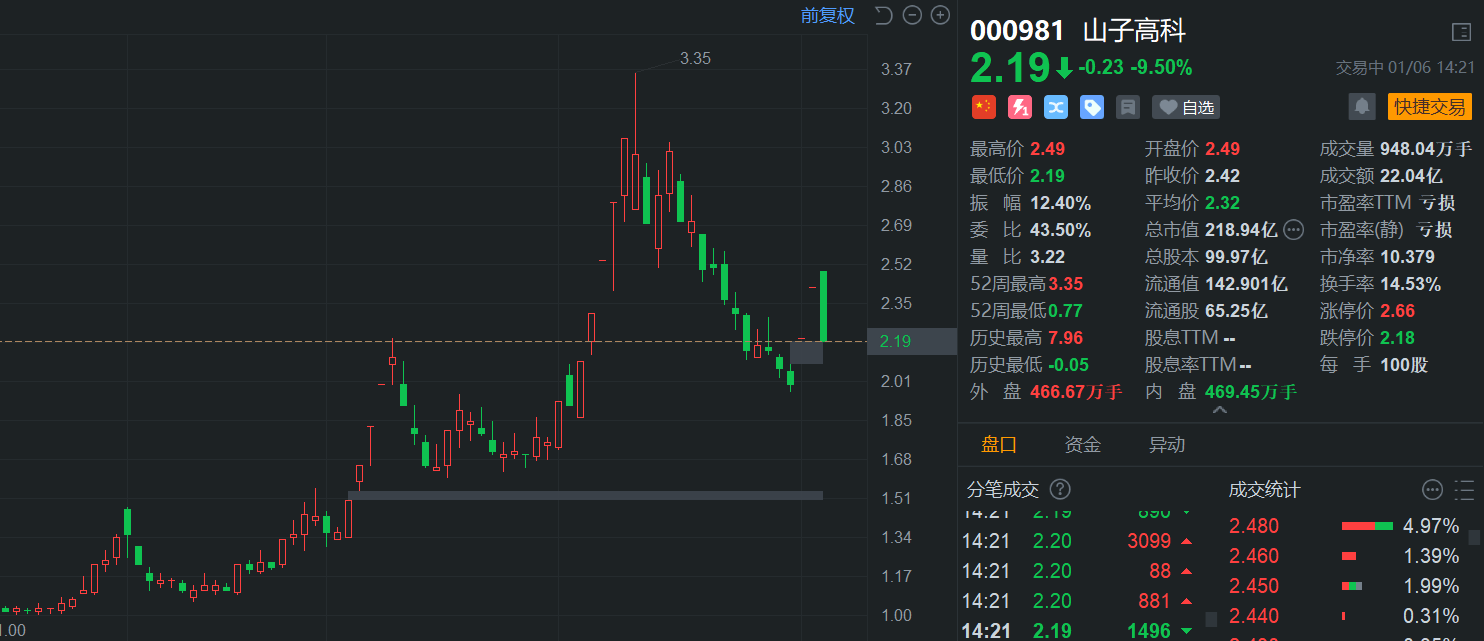 格隆汇1月6日|此前连续2日涨停的山子高科(000981.SZ)今日高开低走,午后逼近跌停板,现报2.2元,总市值218亿元。消息上,公司昨日晚发布股票交易异常波动公告,经自查,公司不存在违反信息公平披露的情形。公司同日公告,于近日收到中国证券监督管理委员会甘肃监管局下发的《行政监管措施决定书》,因存在信息披露事务管理制度不完善、内幕信息知情人登记管理制度不完善且执行不到位等违规事实,甘肃监管局对公司及相关人员采取责令改正监管措施的决定。(格隆汇) (责任编辑:宋政 HN002)