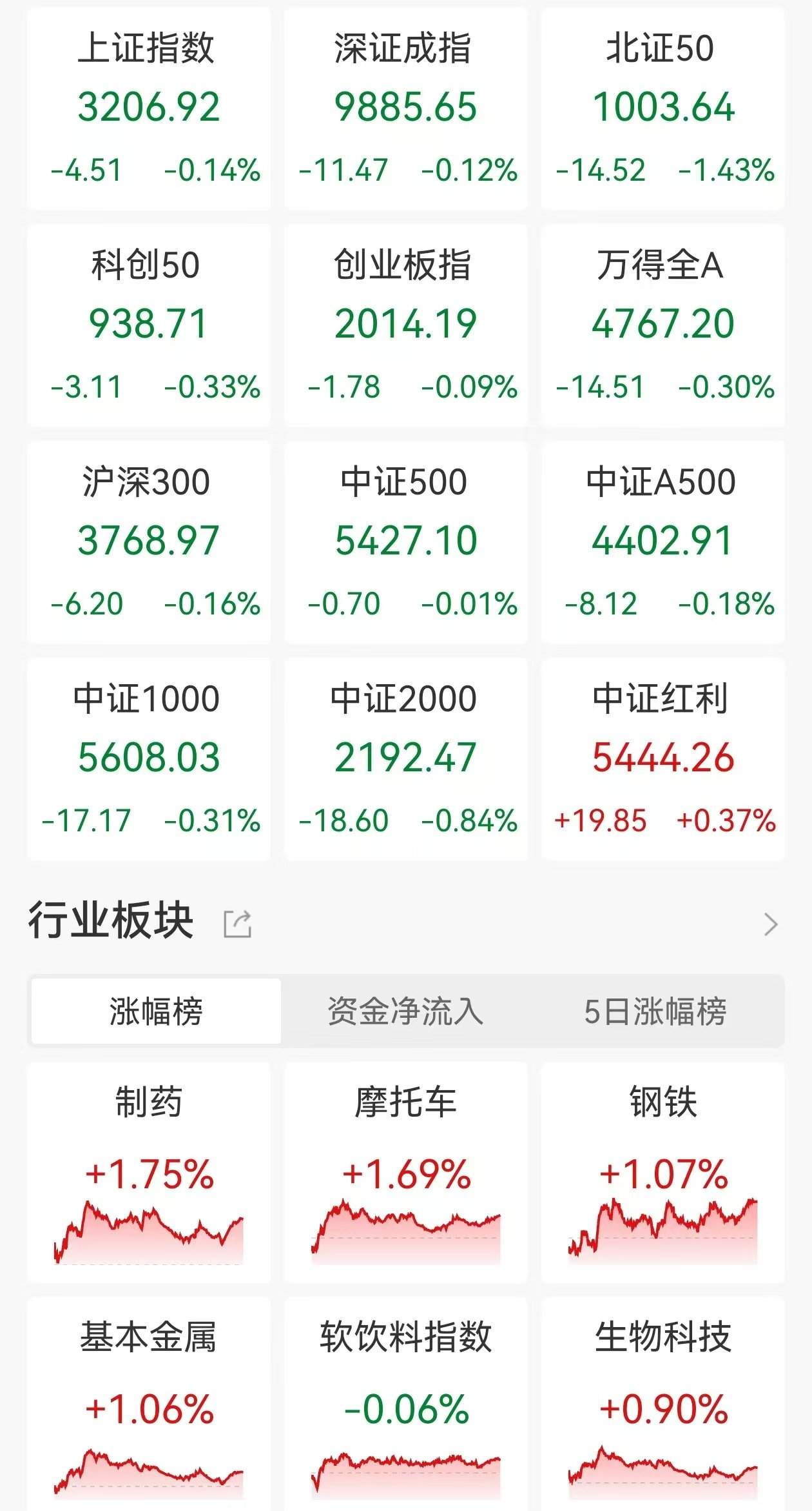 格隆汇1月6日|A股三大指数今日继续走弱,均录得日线4连跌;截至收盘,沪指跌0.14%报3206点盘中一度跌破3200点,深证成指跌0.12%,创业板指跌0.09%。全天成交1.07万亿元,较前一交易日缩量2110亿元,全市场超2900股下跌。 盘面上,商业百货、退税商店板块重挫,友阿股份(002277)、东百集团(600693)等近二十股跌停;AI眼镜板块持续回撤,华灿光电(300323)20%跌停;酿酒板块集体走低,黄台就业跌停、贵州茅台(600519)一度跌近3%;首发经济板块持续下挫,武商集体等多股跌停;彩票概念、盲盒经济及增强现实等板块跌幅居前。另外,近期流感病毒阳性率持续上升,医药板块全线拉升,流感、肝素概念及中药等方向领涨,新华制药(000756)等十余股涨停;刀片电池板块走高,雄韬股份(002733)涨停;SPD概念、小金属及电源设备等板块涨幅居前。(格隆汇) (责任编辑:宋政 HN002)