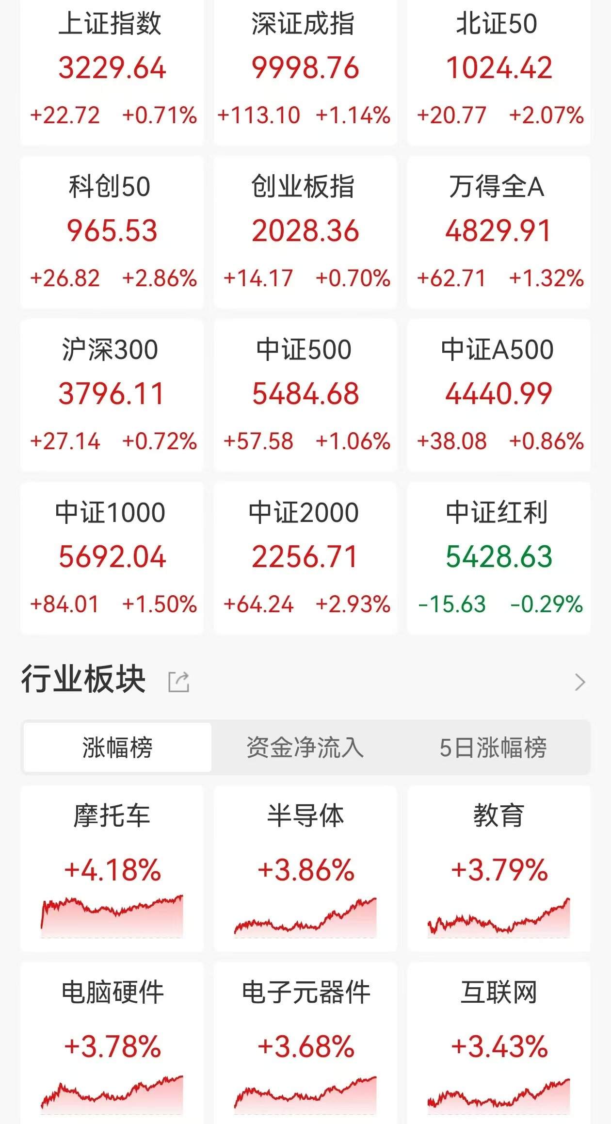 格隆汇1月7日|A股主要指数今日小幅震荡,尾盘拉升上行;截至收盘,沪指涨0.71%报3229点,深证成指涨1.14%,创业板指涨0.7%。全天成交1.09万亿元,较前一交易日增量179亿元,全市场近4400股上涨。 盘面上,铜缆高速连接板块爆发,太辰光(300570)等多股涨停;电源设备板块走高,中恒电气(002364)等多股涨停;半导体板块午后拉升,寒武纪涨超10%创历史新高;可控核聚变板块拉升,东方精工(002611)涨停;全息技术、CPO概念及AI芯片等板块涨幅居前。另外,昨日走高的医药板块普跌,减肥药、中药及流感等方向领跌,方盛制药(603998)逼近跌停;医药商业板块下挫,人民同泰(600829)跌超5%;SPD概念、煤炭及维生素等板块跌幅居前。(格隆汇) (责任编辑:宋政 HN002)