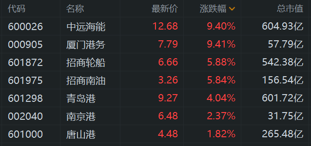 格隆汇1月8日|港口及海运股异动拉升,其中中远海能(600026)、厦门港务(000905)盘中拉升触及涨停,招商轮船(601872)、招商南油(601975)涨约6%,青岛港(601298)、南京港(002040)、唐山港(601000)跟涨。 消息上,据媒体消息,拜登政府计划对俄罗斯实施更多制裁,针对俄罗斯石油收入采取行动,打击运载俄罗斯原油的油轮。华源证券日前指出,地缘冲突导致航线重构,刺激成品油运输需求。红海绕行目前暂无解决进展,预计将长期持续,影响成品油海运量约8.6%,叠加俄乌冲突、影子船队制裁等其他政治要素,预计将长期支撑运量需求。 另外,交通运输部日前表示,截至2024年11月底,全国沿海港口和长江干线主要港口铁路进港率已超90%,全国港口集装箱铁水联运量完成1063万标箱,同比增长15%左右。(格隆汇) (责任编辑:宋政 HN002)