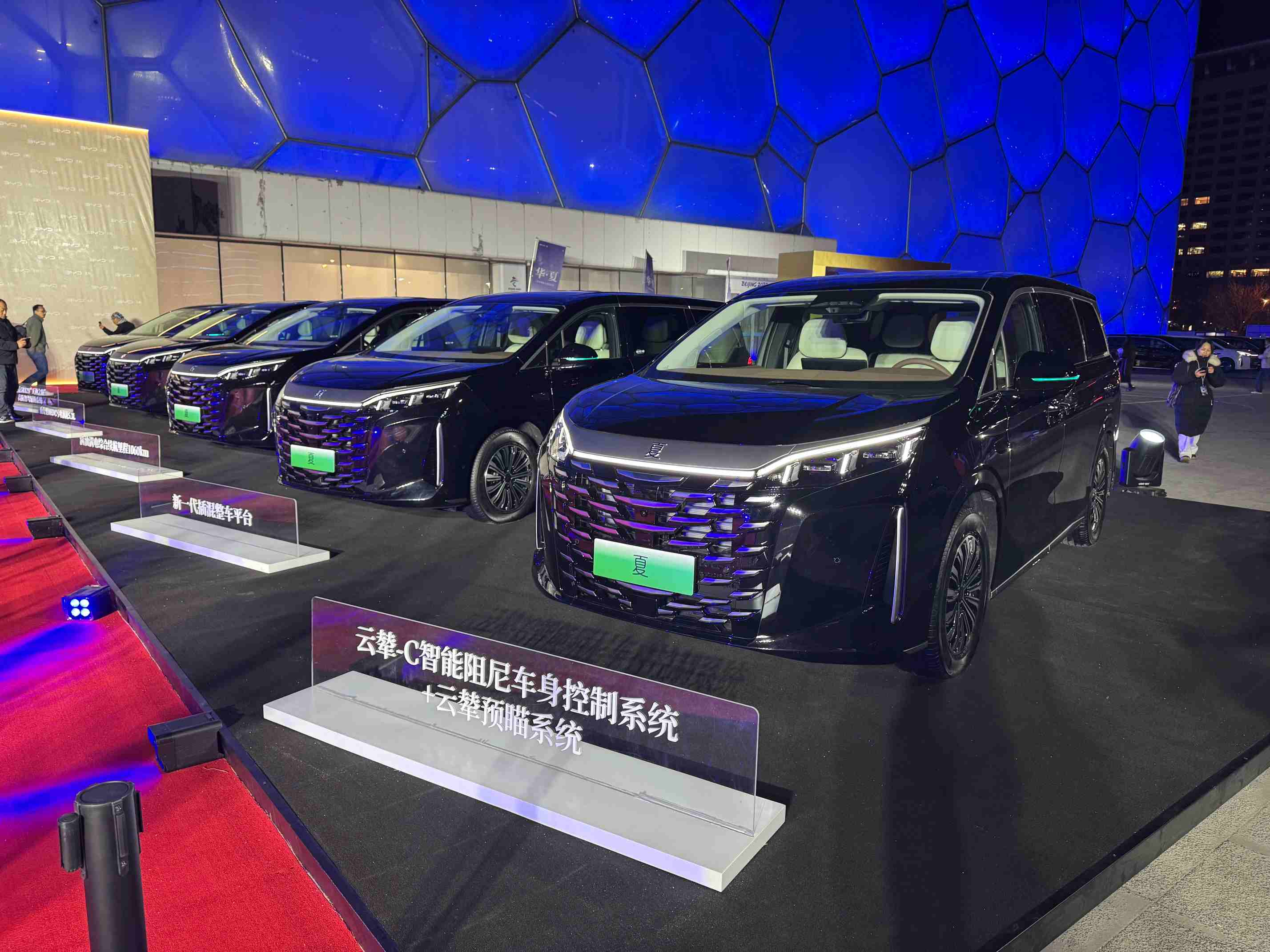凤凰网科技讯(作者/李治钦),1 月 8 日,比亚迪在北京国家游泳中心(水立方)举办发布会,正式发布旗下全新中大型MPV 车型――夏。新车搭载第五代DM技术,还将标配天神之眼智驾系统。提供100公里、180公里两种纯电续航,共四个版本车型,售价区间为24.98-30.98 万元。 比亚迪夏搭载了第五代DM技术,由1.5T发动机与电机组成,发动机最大功率115kW,电机最大功率200kW,零百加速时间为 8.1 秒。配备弗迪磷酸铁锂电池,电池从30%充至80%,最快仅需18 分钟。满油满电综合续航里程最长可达1060km,百公里NEDC亏电油耗5.3L 。同时,还全系标配云辇-C智能阻尼控制系统、云辇预瞄系统,作为主动式车身控制系统,云辇-C可提前感知路面,主动调节悬架阻尼。 比亚迪夏全系标配“天神之眼”高阶智驾辅助系统,通过29个传感器,可实现高快领航、全场景智能泊车辅助等多项智驾功能。 比亚迪夏的车身长宽高为 5145/1970/1805mm,轴距为 3045mm,外观设计延续家族“龙颜美学”,车头配备大尺寸中网,镀铬饰条上有“夏”的汉字标识。夏的侧面设计较为简洁,采用了隐藏式侧滑门导轨。车尾配备贯穿式灯带,尾门为电动开启。 内饰部分,比亚迪夏中控台区域配备多块屏幕,包括15.6英寸中控屏、12.3英寸全液晶仪表、12.3英寸副驾娱乐屏以及流媒体内后视镜,部分车型还配有HUD抬头显示。另外,该车还配备后排15.6英寸吸顶屏、车载冰箱、自研“迪声”音响系统等。 车内座椅采用2+2+3式的7座布局,第三排座椅支持电动调节和一键电动翻折,二三排间留有通道。夏的后备厢容积为 470L,当第三排完全收纳至后备厢地板下时,后备厢能腾出超过2036L的储物容积,方便装载大件物品,此外,后备箱还有220伏电源接口。 比亚迪夏还标配电动双侧滑门、电动尾门、全景天窗、前后排双层隔音玻璃、中后排隐私玻璃以及10安全气囊等。此外,中配及以上车型前中排座椅均加入了通风加热、电动4向腰托等功能,主驾还带按摩功能,副驾有老板键。第二排配备两张零重力座椅,提供电动腿托,支持座椅通风、加热、按摩等功能,门板位置还提供了空调、座椅通风/加热功能的控制按键。 首搭自研“DiSound”音响系统,配备28个扬声器,拥有32个独立音频通道和Hi-Fi音乐头枕,第三排重低音音箱可拆卸为户外蓝牙音箱,续航 9 小时,外放功率达170W 。 比亚迪夏共四个车型,分别为100km 领先型,售价 24.98 万元;100km 超越型,售价 25.98 万元;180km 超越型,售价 28.58 万元;180km 卓越型,售价 30.98 万元。 (责任编辑:郭健东 )