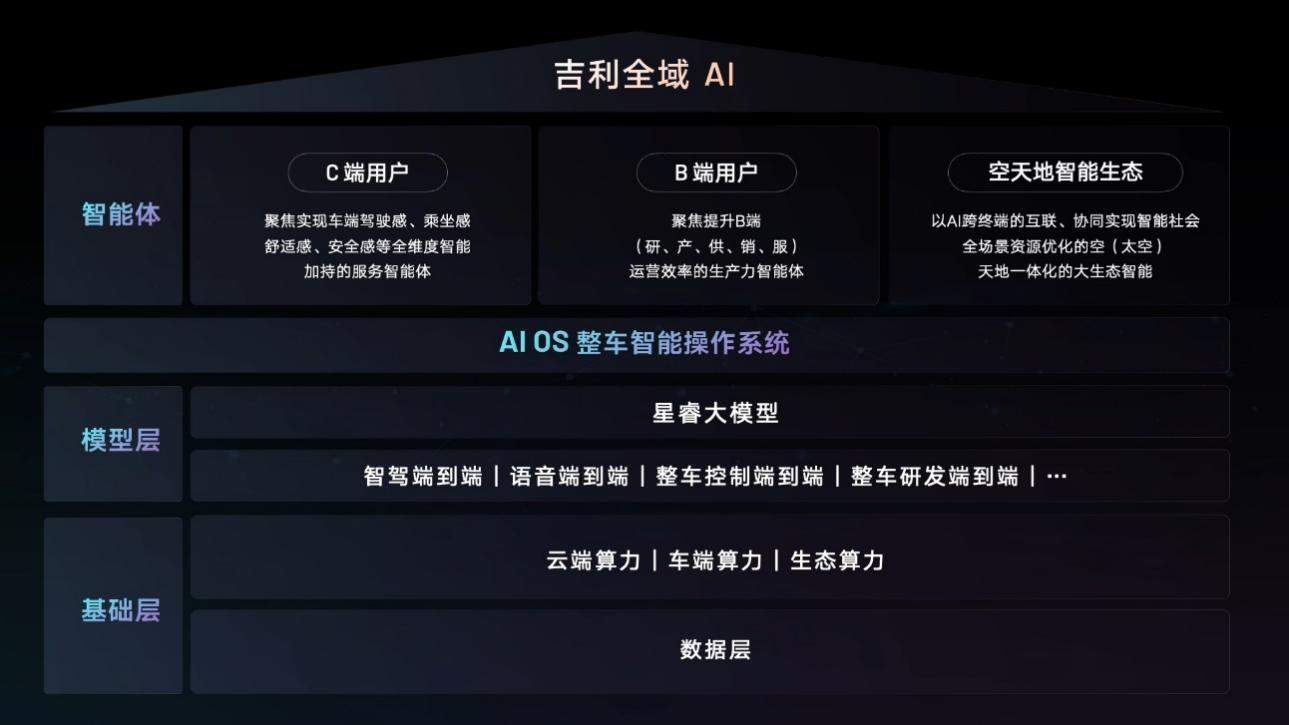 凤凰网科技讯 1月7日,吉利亮相2025国际消费电子展(CES),并发布了行业首个“智能汽车全域AI”技术体系。吉利的“智能汽车全域AI”技术体系,基于AI原生OS构建,覆盖了C端消费者、B端企业服务以及空天地一体的智能生态。基于“智能汽车全域AI”开发的端到端语音大模型、AI数字底盘、Flyme Auto 智能座舱、智能驾驶等最新的AI技术成果,将逐步在吉利新车型上普及应用。 近年来,AI技术快速发展推动着制造业的智能化变革。智能汽车凭借可以搭载大量传感器,拥有能量密度不断提升的动力电池和庞大算力等优势条件,成为发展“具身智能”的优质载体之一。 吉利高度关注智能汽车与AI技术的融合与应用,并构建了覆盖C端消费者、B端企业服务以及空天地一体的智能生态的“智能汽车全域AI”技术体系。相比单纯的车端AI应用的范畴,吉利的智能汽车全域AI覆盖的范围更广、内容也更丰富。 科技博主影视飓风―Tim对话吉利汽车集团副总裁、吉利汽车研究院院长―李传海 在“智能汽车全域AI”技术体系中,吉利以系统级的大模型AIOS作为平台,灵活适配各类终端,在保证系统安全性和用户隐私的同时,实现高效的资源管理和任务调度。通过AIOS调度引擎,吉利“智能汽车全域AI”能够融合车辆、手机、平板、穿戴设备、智能家居、其他形式智能体等多种设备的需求与感知数据,实现多终端的精准服务分发,及全场景的智能生活体验。 在吉利看来,智能汽车将经历“智能助手”、“智能体”和“生命体”三个发展阶段,通过“本体+智能”的不断迭代,最终成长为有温度、有情感的“出行智慧生命体”。 吉利的“智能汽车全域AI”技术体系已全面融入到产品开发中,不仅GEA架构得到了星睿AI大模型的赋能,全新的3.0电子电气架构、车规级芯片和操作系统中,也均融入了吉利AI技术因子,吉利也由此成为了行业首个“用AI架构造AI汽车”的全体系能力的车企。 目前,基于“智能汽车全域AI”技术体系开发的AI银河精灵、Flyme Auto 智能座舱、无界空间、AI云动力、AI绘本、AI哨兵、Wow壁纸等一系列AI技术成果,已陆续在银河E8、银河E5、银河星舰7等产品上应用,为主流家庭用户带来了全新AI科技体验。 比如,银河星舰7搭载的“星睿AI云动力”,可通过AI实现全局寻优的智能决策,基于导航和大数据预测的惯用路线模式,进行油、电能源的分配,更经济、更智能。银河E8、银河E5等车型搭载的AI银河精灵,拥有远程控车、自定义形象、大模型创作、AI灵感绘画、百科知识问答等15大功能,是非常聪明的贴心随身助手。银河E5、吉利星愿等车型搭载的无界空间车云交互平台,所有应用均在云端安装、云端运行,不占本地存储及算力,可以接入海量应用生态。银河E5搭载的哨兵模式、驻车拍照等应用,可全时守卫用车安全…… 在“智能汽车全域AI”技术体系的赋能下,吉利今年还将推动端到端语音大模型、AI数字底盘、高阶智能驾驶等最新的AI技术逐步上车,成为汽车AI科技的普及者。 算力、数据和算法,是AI发展的科技“底座”,也是吉利构建“智能汽车全域AI”技术体系,打造“出行智慧生命体”的基础能力。 在算力领域,吉利建成了行业首个“云数智一体”超级智算中心――吉利星睿智算中心,并完成了行业首个智能计算中心管理流程的认证。目前,吉利星睿智算中心的云端总算力已迭代到102亿亿次/秒,赋予车云一体BMS系统AI算力支撑和云端实时安全保护,可支持500万在线车辆的智算需求。 在数据领域,吉利已积累10T 的token数据、40B的汽车领域垂类数据,建成合成数据平台,为大模型训练准备了核心“燃料”,大幅提升大模型“认知能力”的上限。 在算法上,吉利发布了全球首个汽车行业全场景AI大模型――吉利星睿AI大模型,获得中国通信院“4+级”最高等级评级。 (责任编辑:张晓波 )