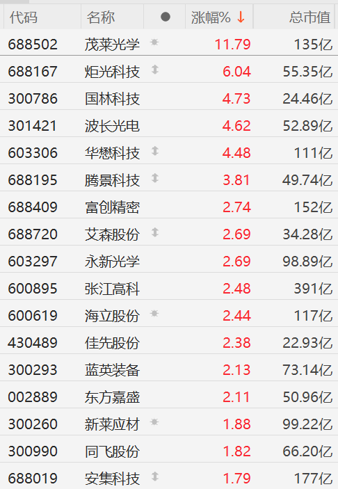 格隆汇1月13日|A股市场光刻机板块拉升,其中,茂莱光学涨超11%,炬光科技涨6%,国林科技、波长光电、华懋科技(603306)涨超4%,腾景科技涨超3%,富创精密、艾森股份、永新光学(603297)、张江高科(600895)、海立股份(600619)、佳先股份、蓝英装备(300293)、东方嘉盛(002889)涨超2%。 (责任编辑:宋政 HN002)