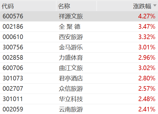 格隆汇1月14日|A股市场餐饮旅游股普涨,其中,祥源文旅涨超4%,全聚德(002186)、西安旅游(000610)、金马游乐、曲江文旅(600706)涨超3%,力盛体育(002858)、君亭酒店、众信旅游(002707)、华立科技、云南旅游(002059)、桂林旅游(000978)涨超2%。 国务院办公厅印发《关于进一步培育新增长点繁荣文化和旅游消费的若干措施》,其中提出,发展夜间文旅经济,丰富夜间消费业态,支持各地对消费集聚商业区升级改造、优化配套服务,因地制宜延长热门景区、文博场馆开放时间。(格隆汇) (责任编辑:宋政 HN002)