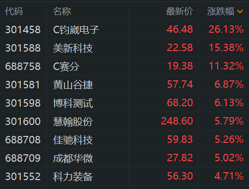 格隆汇1月14日|C钧崴涨超26%触发临时停牌,美新科技涨超15%,C赛分涨超11%,博科测试、慧翰股份涨超5%,科力装备、达梦数据、黄山谷捷、成都华微等跟涨。