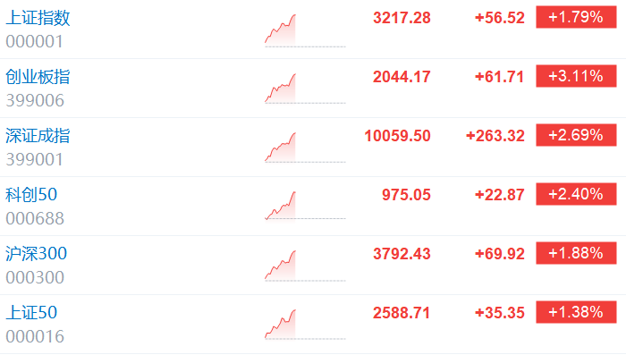 格隆汇1月14日|A股主要指数继续走强,创业板指拉升涨逾3%,沪指涨1.79%,深成指涨2.69%,北证50指数涨超6%。沪深京三市上涨个股超5300只。 港股三大指数持续走强,恒生科技指数涨幅扩大至2.16%,恒指涨1.31%,国指涨1.43%。 科创50指数涨2%,金山办公涨超8%领涨成分股。 (责任编辑:宋政 HN002)