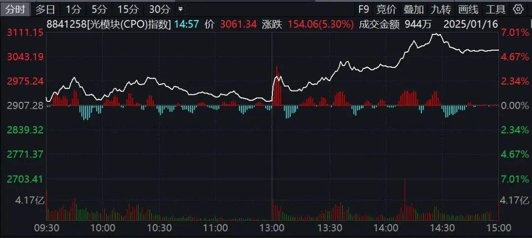 A股冲高回落,三大指数收涨。通信设备概念股全线走强,CPO概念领涨。 今日,A股小幅震荡,主要股指涨跌互现,北证50指数涨逾2%,再创年内新高,科创50指数则冲高回落跌逾2%。上涨个股多于下跌个股,成交温和放大至1.29万亿元。 盘面上,家用电器、小红书概念、小盘国企、通信设备等板块涨幅居前,半导体、酿酒、人形机器人、物流等板块跌幅居前。 Wind实时监测数据显示,通信获得近62亿元主力资金净流入,机械设备获得逾47亿元净流入,商贸零售、有色金属均获得超30亿元净流入,银行、基础化工、家用电器等也均获得超20亿元净流入。电子主力资金净流出逾40亿元,食品饮料、非银金融等也净流出超亿元。 展望后市,华西证券(002926)表示,跨年以来A 股市场超跌,指数有技术性反弹的需求。A股前期下跌主要受到海外再通胀担忧扰动,而非国内经济基本面因素。美国当选总统特朗普正式就职后,A股市场有望再次交易两会政策预期,一轮春季行情或正在酝酿。行业配置上,AI+、人形机器人、低空经济、国产替代等“新质牛”相关主题仍是春季行情主线。 东兴证券预计,春季行情有望开启,市场调整给了较好的布局时机,目前阶段不是恐慌担忧的时候,而是积极布局全年投资机会的时候,看好大科技和大消费两个方向。大科技板块主要关注人形机器人、AI 应用、低空等代表先进生产力发展的方向,大消费更多关注政策导向的方向,家电、消费电子、文旅消费、医美、食品饮料等方向值得重点关注。 市场热点方面,通信设备概念股全线走强,CPO概念领涨,板块指数高开高走涨逾5%。天孚通信(300394)尾盘拉升20%涨停,成交较昨日激增200%以上,创历史天量,罗博特科(300757)、博创科技(300548)、方正科技(600601)等涨停或涨超10%。 铜缆高速连接、光通信、量子科技、数据中心等板块也强势上攻,天融信、共进股份(603118)、泰嘉股份(002843)、汇洲智能等批量涨停。 消息面,据外媒报道,英伟达将于3月的“GTC大会”上推出用于共封装光学(CPO)的光交换机,作为降低人工智能服务器功耗与发热举措的一部分。预计试产工作顺利进行,8月份即可量产。 中信证券称,海外AI算力产业链延续高景气,光模块龙头业绩快速增长。同时,国内AI算力链有望逐步释放业绩,AIDC、交换机、液冷等领域龙头订单显著提升。重点推荐运营商、光模块、连接器、AIDC、液冷、物联网、交换机等细分龙头。 家电股在新的以旧换新政策促进下全面走强,厨卫电器、黑色家电、小家电、智能家居等细分板块均涨幅居前。浙江美大(002677)、万和电气(002543)、帅丰电器、深康佳A(000016)等批量涨停。 银河证券指出,以旧换新政策驱动下,家电内销表现显著改善,家电企业积极推动新兴市场拓展,全球份额稳步提升,行业景气持续迎来正反馈。建议关注三条投资主线:一、有望受益于内外销改善的白电龙头;二、有望受益于行业格局优化和地产端筑底改善的厨电龙头;三、积极推动渠道拓展、加快新品投放的清洁电器。 本文首发于微信公众号:e公司。文章内容属作者个人观点,不代表和讯网立场。投资者据此操作,风险请自担。 (责任编辑:宋政 HN002)