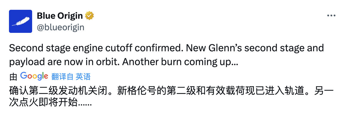 “新格伦”火箭升空 凤凰网科技讯 北京时间1月16日,美国当地时间周四凌晨,杰夫・贝佐斯(Jeff Bezos)旗下航天公司蓝色起源首次发射轨道级火箭“新格伦”(New Glenn),并成功入轨。 “新格伦”火箭对于贝佐斯实现其太空雄心至关重要。虽然蓝色起源已经可以将付费游客送至太空边缘体验失重的感觉,但是尚不具备将货物送入轨道的能力。相比之下,埃隆・马斯克(Elon Musk)旗下SpaceX已经主导了美国商业发射市场。“新格伦”火箭不但能够让蓝色起源争夺美国宇航局登月计划等项目的合同,还可以为贝佐斯发射“柯伊伯互联网项目”(Project Kuiper)中的卫星。 当地时间周四凌晨2:03分,“新格伦”在7个BE-4可重复使用发动机的推动下,从佛罗里达州卡纳维拉尔角的发射台上发射升空,此次试飞的主要目标是将测试卫星Blue Ring Pathfinder送入轨道。 发射几分钟后,“新格伦”的第一级成功与第二级分离,第二级继续飞向太空。大约在发射任务进行到13分钟时,蓝色起源宣布“新格伦”第二级已成功进入轨道,任务控制中心内随即爆发出欢呼声。 蓝色起源确认“新格伦”第二级和有效载荷进入轨道 不过,直播评论员随后证实,火箭的第一级在尝试降落在大西洋上的无人船上时损毁,未能完成这次发射任务的次要目标。 “关键是,我们完成了主要目标,”蓝色起源高管阿里安娜・科内尔(Ariane Cornell )对观众表示,“我们(的火箭)安全地进入了轨道。” 对于蓝色起源来说,此次试飞的主要目标是入轨,其他的都是锦上添花。蓝色起源CEO戴夫・林普(Dave Limp)表示,目标是在2025年发射6次至8次“新格伦”火箭。(作者/箫雨) (责任编辑:张晓波 )