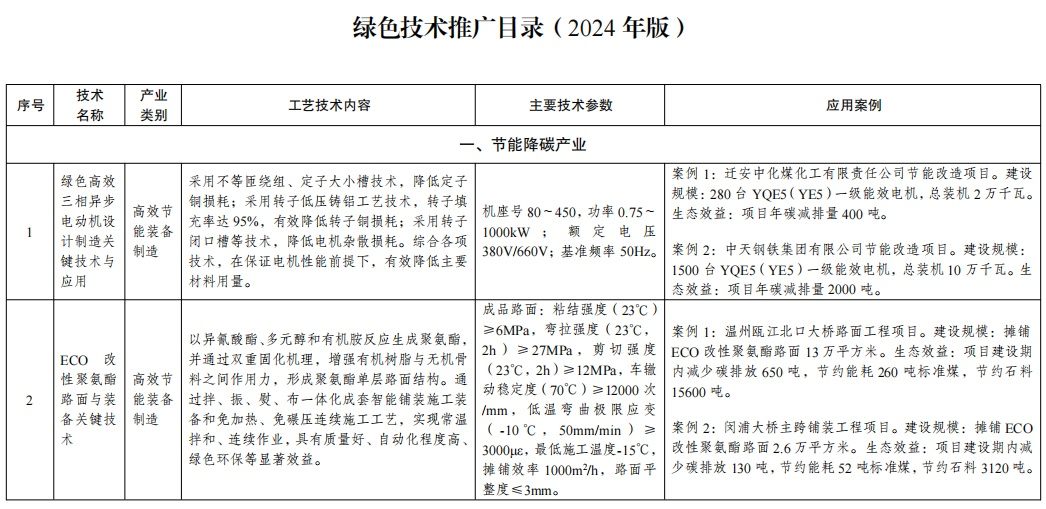 【大河财立方消息】1月20日消息,国家发展改革委会同科技部、工业和信息化部、自然资源部、生态环境部、住房城乡建设部、国务院国资委、国家能源局印发了《绿色技术推广目录(2024年版)》。 《目录》遴选了节能降碳产业、环境保护产业、资源循环利用产业、能源绿色低碳转型、生态保护修复和利用、基础设施绿色升级、绿色服务等7大类产业112项先进绿色技术,列明了每项技术的工艺技术内容、主要技术参数、实际应用案例、生态效益等。各有关方面可据此了解相关技术的主要原理、路径方向以及应用场景和实施效果,结合自身实际进行推广和使用。 下一步,国家发展改革委将会同有关部门,结合全国生态日、全国节能宣传周等,组织开展技术路演、成果推介等活动,推动技术产业化应用。鼓励金融机构通过绿色信贷、绿色债券、碳减排支持工具等,加强对《目录》内绿色技术应用的融资支持。 附完整目录: 《绿色技术推广目录(2024年版)》 责编:史健 | 审核:李震 | 监审:万军伟 (责任编辑:董萍萍 )