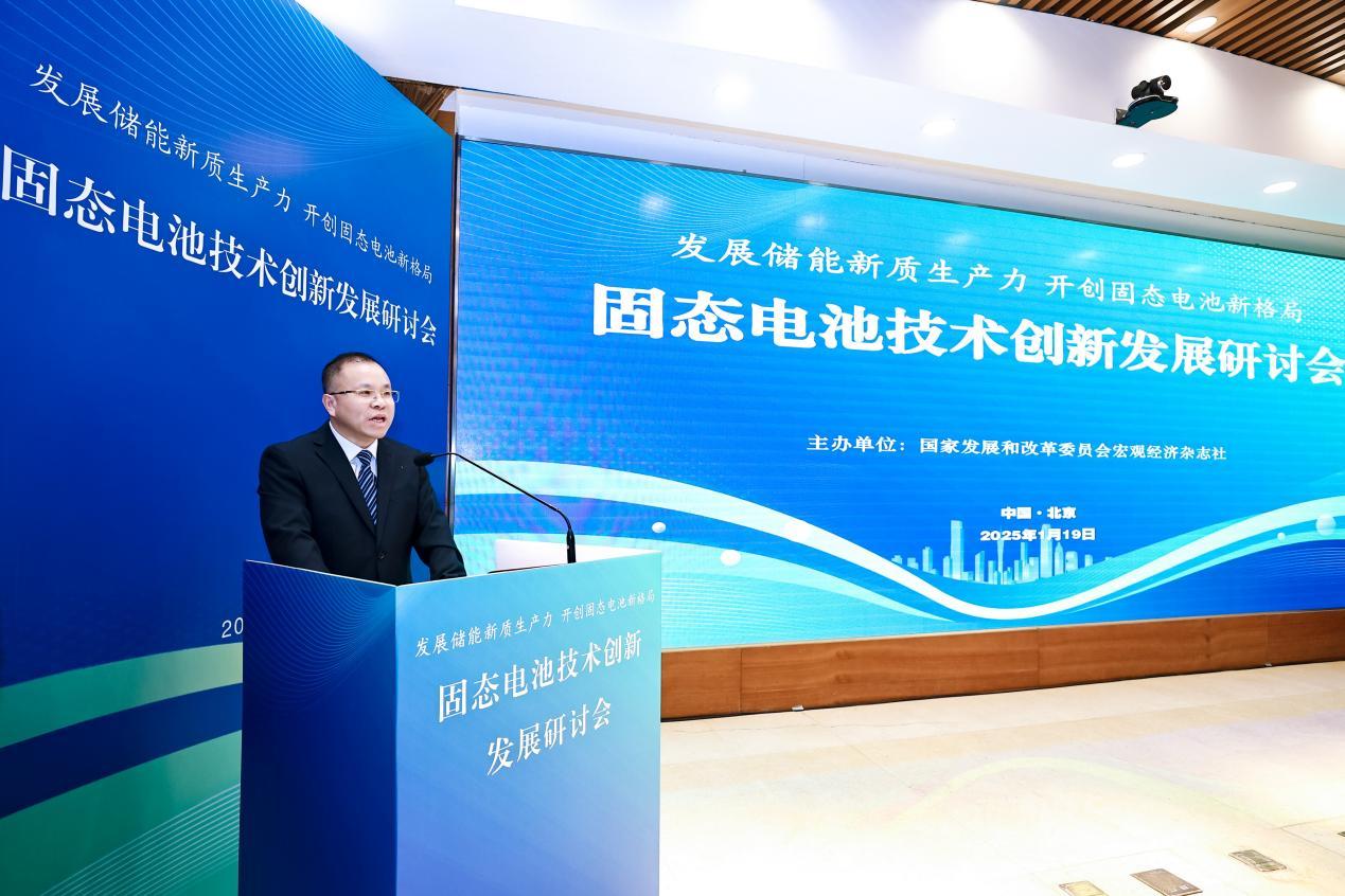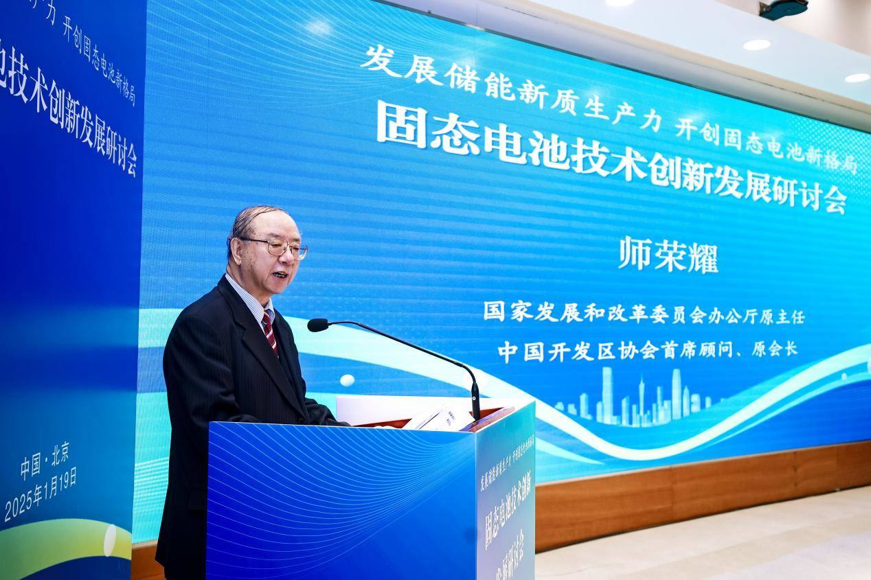 中国网财经1月21日讯 1月19日,固态电池技术创新发展研讨会在京举行。研讨会由国家发展和改革委员会宏观经济杂志社主办,以“发展储能新质生产力,开创固态电池新格局”为主题。 与会嘉宾围绕固态电池技术的创新与发展,探讨固态电池行业的新质生产力发展,深入分析目前固态电池行业的发展现状与未来趋势,促进政策沟通与产业合作,推动新能源行业高质量发展。 国家发展改革委《宏观经济管理》专家委员会秘书长易昌良主持会议(主办方供图) 国家发展改革委宏观经济杂志社社长、总编辑韦大乐致辞(主办方供图) 国家发展改革委宏观经济杂志社社长、总编辑韦大乐表示,2024年底召开的全国能源工作会议中多次强调要持续深入推进实施能源安全新战略,加快规划建设新型能源体系。储能技术的突破对于我国实现绿色发展和建设新型能源体系具有举足轻重的作用。固态电池作为新一代电池技术的翘楚,凭借其高能量密度、长寿命和高安全性,在未来电动汽车和可再生能源存储领域拥有巨大发展潜力。 中国大唐集团原董事长、原国有重点大型企业监事会主席,中国电力设备管理协会会长刘顺达致辞(主办方供图) 中国大唐集团原董事长、原国有重点大型企业监事会主席,中国电力设备管理协会会长刘顺达从政策扶持到发展目标设定,勾勒出储能产业高质量发展的宏伟蓝图。他表示,新质生产力的核心标志是全要素生产率大幅提升,特点是创新,关键是质优,本质是先进生产力,固态电池应从“提质、降本、突破、塑造”八字入手,不断推进能源的消费革命,供给技术体制革命和国际合作,不断提升电能在终端消费中的比重,实现国际认证和领先的标准,从而推动经济高质量发展。 国家发展和改革委员会办公厅原主任,中国开发区协会首席顾问、原会长师荣耀致辞(主办方供图) 国家发展和改革委员会办公厅原主任,中国开发区协会首席顾问、原会长师荣耀强调,开发区和园区是壮大实体经济的重要阵地、培育产业集群的重要载体、推动对外开放的重要平台,国家级经开区先行先试因地制宜建设新质生产力示范区,对于构建现代化产业体系、推动开放型经济体制建设、促进区域协调发展、实现中国式现代化具有重大意义。他建议,国家级经开区建设要坚持以高科技创新引领产业变革,坚持以高水平开放服务双循环发展格局,坚持以因地制宜发展新质生产力,在立足地区资源要素优势的基础上,不断探索区域间产业合作,加快形成人才集聚效应,发展新质生产力,推动高质量发展。 甘肃省金昌经开区党工委书记、管委会主任,金昌高新技术产业开发区管委会主任王振德致辞(主办方供图) 甘肃省金昌经开区党工委书记、管委会主任,金昌高新技术产业开发区管委会主任王振德介绍了甘肃省金昌高新技术产业开发区的相关情况。金昌市盛产镍,被誉为中国镍都,源矿兴企,因企设市。2010年3月,经国务院批准,金昌市经开区升级为国家级经济技术开发区,先后获得国家级新材料产业化基地,国家新型工业化产业示范基地等一项又一项的金字招牌。他表示,金昌市经开区将立足优势特色,全力推动有色金属新材料产业链、价值链向中高端跃进,新能源电池和电池材料产业向全链条贯通,加快布局氢能和低空经济等未来产业,培育和发展具有金昌特色的新质生产力。 在主旨演讲环节,专家学者围绕储能产业的发展机遇、新型储能标准体系建设、三维固态特种电池的应用与前景、“零碳中国”如何助力中国高质量发展等话题进行深入思考和探讨。 原国家发展改革委能源局局长、国务院原参事徐锭明(主办方供图) 原国家发展改革委能源局局长、国务院原参事徐锭明深入浅出地剖析了当前储能产业的创新发展路径。他表示,能源安全是国家安全的基石,能源革命是国家发展的基石。能源行业面临着两大重任,一是确保能源安全,二是推进能源革命。随着能源革命的深入和能源结构的调整,要打造构建新型电力系统,要靠“三能”,即氢能,储能和智能。其中,储能是用科学匹配的方式方法,针对不同地区的资源能源储蓄情况,利用科技智能的手段,全面系统安全打造新型电力生态系统的重要途径。 原国家质量监督检验检疫总局总检验师项玉章(主办方供图) 原国家质量监督检验检疫总局总检验师项玉章认为,储能是建设新型能源体系的重要支撑,被喻为新能源的“稳定器”、电力系统的“充电宝”、能源供应的“蓄水池”。他提出,一方面,要积极推动新型储能技术和产业发展,强化新型储能相关标准规范应用要求;另一方面,要积极推动新型储能标准体系建设,加快完善新型储能技术标准,细化储能电站上网类型和应用场景,加强对新型储能重大示范项目分析评估。 高博特种电池技术(深圳)有限公司董事长王耀民(主办方供图) 高博特种电池技术(深圳)有限公司董事长王耀民从企业实践的角度出发,通过测试视频和产品专利技术的展示等多种方式,生动地阐释了三维固态特种电池的研发过程、产品性能以及应用前景。三维固态电池作为化学材料领域当前极具发展前景的电池研发方向,利用特殊的三维多孔均衡互联金属材料,构建了液态、半固态、全固态电池的集流体。这不仅显著提升了电池的质量和性能,而且兼顾了低成本、耐低温、高安全性等传统电池所面临的部分主要难题。在推动