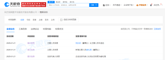 仟茂科技讯 1月21日上午消息,天眼查App显示,近日,同方知网数字出版技术股份有限公司发生工商变更,刘长欣卸任法定代表人、董事长,由姜礼瑞接任。 该公司成立于1999年7月,注册资本约2.4亿人民币,经营范围含信息技术咨询服务、互联网数据服务、网络与信息安全软件开发、大数据服务、数据处理和存储支持服务、人工智能公共数据平台、信息系统集成服务等,由同方股份(维权)(600100)、北京清华同方机电工业有限公司等共同持股。 责任编辑:江钰涵 (责任编辑:张晓波 )