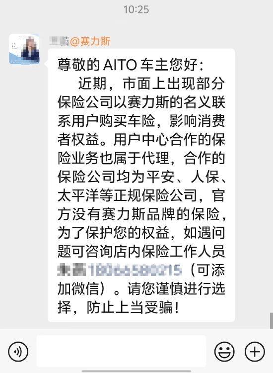 仟茂科技讯 1月21日午间消息,赛力斯客服向车主发送消息称,近期,市面上出现部分保险公司以赛力斯的名义联系用户购买车险,影响消费者权益。用户中心合作的保险业务也属于代理,合作的保险公司均为平安、人保、太平洋等正规保险公司,官方没有赛力斯品牌的保险。 责任编辑:尉旖涵 (责任编辑:张晓波 )