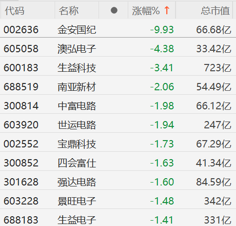 格隆汇1月23日|A股市场PCB板块冲高回落,其中,金安国纪(002636)触及跌停板,澳弘电子跌超4%,生益科技跌超3%,南亚新材跌2%。
