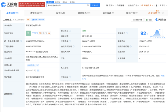 仟茂科技讯 1月23日下午消息,天眼查App显示,近日,顺丰速运有限公司发生工商变更,注册资本由1.5亿人民币增至2亿人民币。 该公司成立于2013年7月,法定代表人为王书槐,经营范围包括国际货运代理、经济技术咨询、技术信息咨询、装卸搬运、普通货运等,由深圳顺丰泰森控股(集团)有限公司全资持股。(罗宁) 责任编辑:江钰涵 (责任编辑:张晓波 )
