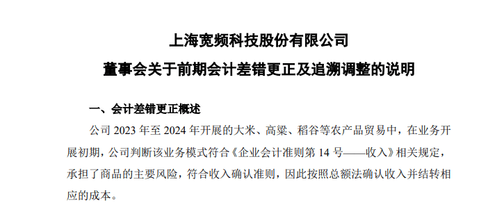一家A股上市公司逾1.7亿元的营业收入突然“消失”了。 ST沪科(600608)1月24日晚间宣布,公司对上述年度的部分定期报告的会计差错进行了更正及追溯调整。证券时报・e公司记者注意到,调整后,公司2023年、2024年的收入均有所缩水。其中,公司2024年扣除与主营业务无关的业务收入和不具备商业实质的收入后的营业收入更是只有650万元。 值得一提的是,证券时报去年12月曾刊发《ST沪科主业虚实:贸易链条隐现假国企》,指出公司大宗商品贸易的真实性严重存疑。 业绩水分被排,股票或“披星” ST沪科此次对前期会计差错更正及追溯调整涉及公司2023年第三季度报告、2023年年报、2024年第一季度报告、2024年半年度报告、2024年第三季度报告财务报表。主要为报表中存货、其他流动资产、营业收入及营业成本等科目的调整。 营业收入方面,ST沪科2023年年报披露的营业收入为1.71亿元,更正金额为-2229.19万元,更正后为1.49亿元。公司2024年第三季度报告披露的营业收入为1.9亿元,更正金额为-1.75亿元,更正后为1498.75万元。 ST沪科解释称,公司2023年至2024年开展的大米、高粱、稻谷等农产品(000061)贸易中,在业务开展初期,公司判断该业务模式符合《企业会计准则第14号――收入》(下称《第14号准则》)相关规定,承担了商品的主要风险,符合收入确认准则,因此按照总额法确认收入并结转相应的成本。近期,公司通过对相关贸易业务进行严格自检自查,结合《第14号准则》等,并结合审计机构相关意见,对上述农产品业务对应营业收入确认方法调整为净额法。 在上市公司看来,上述调整不会对公司净资产、净利润、经营活动现金流量净额造成影响,未导致公司已披露的2023年第三季度报告、2023年年报、2024年半年报出现盈亏性质的改变。 ST沪科对去年前三季度业绩“挤水分”,导致公司去年全年的业绩失去了支撑。 据ST沪科同步披露的2024年度业绩预告,其预计公司2024年实现营业收入约1730万元,扣除与主营业务无关的业务收入和不具备商业实质的收入后的营业收入约650万元。同时,公司预计2024年实现利润总额约-670万元,净利润约-520万元。 根据《上海证券交易所股票上市规则》有关规定,若ST沪科触及“最近一个会计年度经审计的利润总额、净利润或者扣除非经常性损益后的净利润孰低者为负值且营业收入低于3亿元,或追溯重述后最近一个会计年度利润总额、净利润或者扣除非经常性损益后的净利润孰低者为负值且营业收入低于3亿元”,公司股票在2024年年报披露后,将被实施退市风险警示。 贸易链条真实性存疑 ST沪科于1992年登陆A股,公司原名“上海一钢异型钢管股份有限公司”。2000年12月,公司更名为“上海宽频科技股份有限公司”,主营变为社区宽频接入网络业务。此后,公司数度易主,于2012年由昆明国资委控股。2017年,公司剥离传统钢材制品加工制造业务后,业务以商品贸易业务为主,并逐步向供应链服务商转型。 前些年,ST沪科凭借与供应商香港石油化学有限公司(下称“香港石化”)的交易,使得其塑料粒子贸易业务快速做大。 然而,受香港石化去年被强制清盘影响,ST沪科贸易业务规模大幅缩水。按照上市公司所称,其近两年加大了农产品业务的开展力度。2023年度,公司化工产品贸易营业收入为1.46亿元,占公司总营业收入1.71亿元的85.40%;农产品贸易营业收入2490.55万元,占比14.56%。 2024年前三季度,ST沪科1.9亿元营业收入中,来自农产品大宗贸易的收入高达1.78亿元。然而,去年12月,ST沪科在回复上交所的监管问询函时称,公司存在供应商和客户地址相近的情况,两者是否存在关联关系有待核查。 彼时,证券时报调查发现,ST沪科农产品大宗商品贸易业务的供应商、客户之间关系盘根错节,电话、邮箱、历史股东等存在大量重合。从实地探访结果来看,部分公司注册地写字楼空空如也,“查无此人”。此外,公司诸多供应商、客户都存在假国企嫌疑。 ST沪科过往的贸易业务也存在疑点。 2020年度,ST沪科前五大供应商分别为上海生科实业、中同能源科技、浙江泰誉新材料、上海蔚利国际贸易(下称“上海蔚利”)、上海缘育农业科技(下称“上海缘育”)。其中,上海生科实业、上海蔚利、上海缘育均已被相关法院列入失信被执行人、限制高消费名单。 当时,ST沪科向上海蔚利采购了8763.96万元的铝锭,向上海荣理国际贸易(下称“上海荣理”)销售了8861.52万元的铝锭。 从企查查显示,上海荣理、上海蔚利的实际控制人为不同的自然人。不过,两家公司曾因同一份买卖合同纠纷案件被五矿铝业起诉,且因同一份案件被限高等。针对上述案件,广州市天河区人民法院曾于2023年4月对两家公司分别所持位于佛山市南海区万达广场南6栋的2215室、2216室房产进行拍卖。拍卖公告中称,涉案2215室、2216室已打通,无法区分两处房产内部面积界限。 本文首发于微信公众号:e公司。文章内容属作者个人观点,不代表和讯网立场。投资者据此操作,风险请自担。 (责任编辑:宋政 HN002)