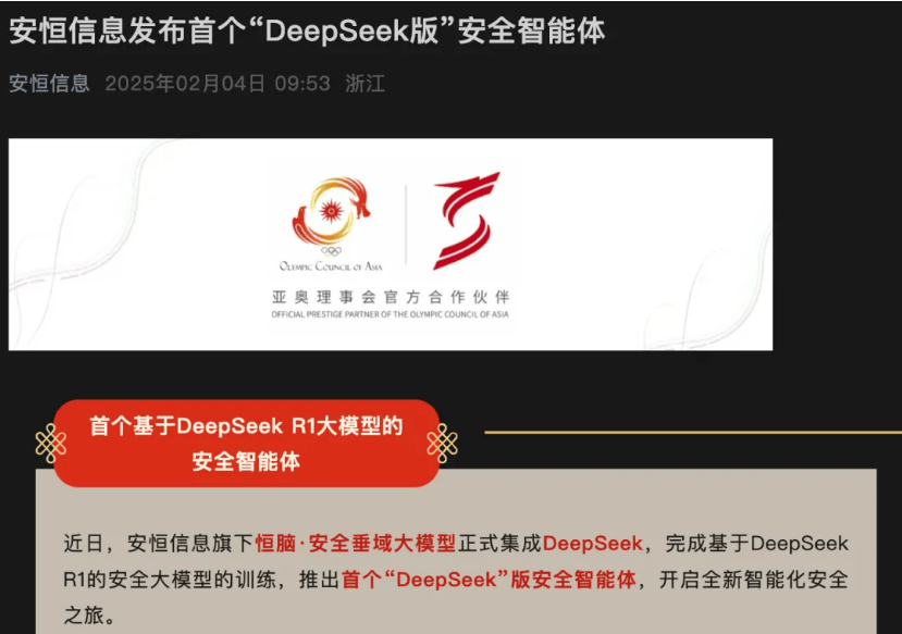 2月以来,已有多个平台宣布了跟DeepSeek大模型的合作。 2月4日晚间,华为计算微信公众号发文表示,DeepSeek-R1系列模型的开源,因其出色的性能和低廉的开发成本,已引发全球的热切讨论和关注。潞晨科技携手N腾,联合发布基于N腾算力的DeepSeek-R1系列推理API,及云镜像服务。 华为计算称,在本次发布中,潞晨以自研国产推理引擎为技术底座,成功实现了N腾算力与DeepSeek-R1系列模型的推理适配优化,性能表现与使用高端GPU持平,为开发者提供高效、灵活、稳定的AI推理服务,助力企业实现降本增效,加速智能业务基于中国软硬件体系快速部署落地。 其还称,当前,DeepSeek-R1系列推理API无限量限时免费开放体验,诚邀广大开发者抢先体验。 另外,对于自定义需求高、需求私有化部署DeepSeek-R1系列模型的用户,潞晨科技也通过潞晨云提供了基于开源方案的推理镜像,可便捷启动N腾或其他算力资源及对应镜像,部署私有推理服务。同样支持从满血671B到蒸馏小模型,包含N腾在内的多种算力,用户可灵活选择。 2月4日,安恒信息也在官微发布信息称,近日,安恒信息旗下恒脑・安全垂域大模型正式集成DeepSeek,完成基于DeepSeek-R1的安全大模型的训练,推出首个“DeepSeek”版安全智能体,开启全新智能化安全之旅。 公司表示,依托恒脑智能体开发应用框架,安恒信息快速完成已有安全智能体迁移和适配,此次推出的“DeepSeek”版安全智能体在钓鱼邮件识别、数据分类分级、告警研判等关键业务场景表现出色。 公司还称,未来,安恒信息将继续深化与DeepSeek等国内前沿AI技术企业的合作,不断优化安全智能体的功能与性能,为用户提供更加优质、高效的安全服务。 同样在2月4日,腾讯云也发文称,为了让更多开发者便捷调用DeepSeek,腾讯云TI平台推出“开发者大礼包”:DeepSeek全系模型一键部署,部分模型限免体验,从千亿级“满血版”到轻量级“小杯”,均可放心闭眼入。 腾讯云表示,准备了一份“限时福利”――TI平台开放R1和R1-1.5B模型免费在线体验。 近日,百度智能云、华为云、阿里云、腾讯云、360数字安全、云轴科技等多个平台宣布上线DeepSeek大模型。 2月3日晚间,百度智能云宣布,百度智能云千帆平台已正式上架DeepSeek-R1和DeepSeek-V3模型,推出了超低价格方案,还可享受限时免费服务,登录百度智能云千帆ModelBuilder即可快速体验。 百度智能云称,此次接入的模型已全面融合千帆推理链路,集成百度独家内容安全算子,实现模型安全增强与企业级高可用保障,同时支持完善的BLS日志分析和BCM告警,助力用户安全、稳定地构建智能应用。 据了解,该模型限时免费2周,截止时间为2月18日24:00。限免配额是1000RPM&10000TPM,调用Tokens无上限。 同样在2月3日,阿里云也宣布,阿里云PAI Model Gallery支持云上一键部署DeepSeek-V3、DeepSeek-R1。在该平台上,用户可以零代码实现从训练到部署再到推理的全过程,简化模型开发流程,为开发者和企业用户带来了更快、更高效、更便捷的AI开发和应用体验。 随着DeepSeek于2024年12月上线并开源DeepSeek V3/R1/Janus Pro,近期已有华为云、腾讯云、360数字安全、云轴科技ZStack等多个平台宣布上线DeepSeek大模型。 2月1日,据华为云官方公众号,DeepSeek-R1开源后引发全球用户和开发者关注。经过硅基流动和华为云团队连日攻坚,现在,双方联合首发并上线基于华为云N腾云服务的DeepSeek R1/V3推理服务。得益于自研推理加速引擎加持,硅基流动和华为云N腾云服务支持部署的DeepSeek模型可获得持平全球高端GPU部署模型的效果。 2月2日,腾讯云宣布,DeepSeek-R1大模型一键部署至腾讯云「HAI」上,开发者仅需3分钟就能接入调用。简单来说,通过「HAI」,开发者可以省去买卡、装驱动、配网络、配存储、装环境、装框架、下载模型等繁琐步骤,只需两步即可调用DeepSeek-R1模型。 2月2日,360数字安全称,近日,360数字安全集团宣布其安全大模型正式接入DeepSeek,将以DeepSeek为安全大模型基座,发挥360安全大数据优势,通过继续强化学习等技术手段,训练出“DeepSeek版”安全大模型,让安全真正做到“自动驾驶”。 此外,1月31日,英伟达、亚马逊和微软这三家美国科技巨头在同一天宣布接入由中国企业开发的先进大语言模型DeepSeek-R1。 每日经济新闻综合公开信息 免责声明:本文内容与数据仅供参考,不构成投资建议,使用前请核实。据此操作,风险自担。 (责任编辑:王治强 HF013)
