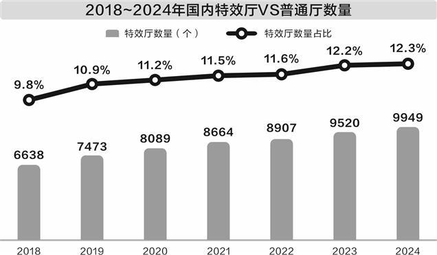 资料来源:拓普数据 图虫创意/供图 周靖宇/制图 证券时报记者 吴志 刚刚过去的2025年春节档创下了新的档期票房纪录。今年春节档上映的影片“工业大片”属性明显。《射雕英雄传:侠之大者》《封神第二部:战火西岐》《哪吒之魔童闹海》等都是视效大片。在这些影片带动下,更多观众今年选择在体验更佳的特效厅观影。 特效厅又称特殊厅,是包括巨幕厅、音效厅、高帧厅、4D厅等在内的特殊类型影厅的统称。国内观众最熟知的特效厅品牌包括有着巨大尺寸银幕的IMAX影厅和主打先进音效、视效的杜比影院。 近年来,随着国产电影科技的进步,以中国电影旗下CINITY为代表的国产电影放映系统快速发展。目前,CINITY已成为国内特效厅市场的重要组成部分,共同为观众提供丰富多样的观影体验。 1 “国产特效厅”崛起 2021年11月国家电影局发布的《“十四五”中国电影发展规划》提到,到2035年,我国将建成电影强国,中国电影实现高质量发展。规划提出,“十四五”时期我国电影要努力实现“电影科技能力显著增强”等发展目标。 在电影产业中,放映是连接电影生产、影院和终端消费者的重要一环。早年的电影放映靠的是一台放映机和一块幕布。随着电影科技的进步,如今的电影院里已满是“高科技”,在主打更佳观影体验的特效厅里更是如此。 按照属性功能不同,特效厅大致可以分为巨幕厅、音效厅、高帧厅、4D厅等。按照品牌区分,目前主流特效厅品牌有IMAX、杜比影院及中影CINITY、中国巨幕、MX4D等。 由于观影体验更佳,特效厅的票房产出相较普通厅更高。根据行业研究机构拓普数据近期发布的《2024年中国电影产业年报》,2024年我国特效厅数量为9949个,占全国影厅总数的12.3%;而2024年特效厅产出的票房为85.3亿元,约占国内电影总票房的20%。 近年来,特效厅市场随着消费者高端观影需求的提升而不断增长。整体来看,从2018年到2024年,特效厅的数量持续提升。2018年,国内特效厅占全部影厅的9.8%,2024年这一比例已提升至12.3%。 另一个值得关注的趋势是,此前被国外品牌主导的特效厅市场,已经有了更多的国产品牌身影。前述报告显示,2024年,中影CINITY品牌特效厅的票房达到2.49亿元,较2019年的1.31亿元近乎翻倍。 作为最为大众熟知的特效厅品牌,IMAX在国内市场长期占据优势地位。但报告显示,国内IMAX影厅的票房已从2019年的24.3亿元降至2024年的14.36亿元;杜比影院也从1.9亿元降至1.18亿元,近几年的发展相对滞后。 从《阿凡达》系列电影的放映变化中,也能直观地感受到国产放映系统的进步。2010年《阿凡达》在国内上映,为观众提供了全新的IMAX、3D电影体验。当时由于国内仅有十多个IMAX影厅,《阿凡达》IMAX版本一度一票难求。 到了2022年底,《阿凡达2》国内上映时,观众在IMAX、杜比视界版本外,有了CINITY、中国巨幕等更多选择。尤其是CINITY系统,被认为是最适配《阿凡达2》的放映格式,该片导演卡梅隆也指定中影CINITY为《阿凡达2》影片在中国和多个国家及地区的独家首映式合作伙伴。 2 靠什么打动观众? 特效厅不仅仅是一块更大的银幕或更好的音响,其背后是一套完整的放映系统以及完成运营的高端影院品牌。通过这套高端放映系统和匹配该系统单独制作的高格式版本影片内容,高端特效影厅能为观众提供更好的观影质量,打造完整沉浸的观影体验。 有知名电影博主向记者表示,平时看电影时会比较关注放映的是否为特效厅。尤其是在观看好莱坞大片等视效要求高的影片时,会在综合考虑价格、距离的基础上优先选择特效厅。 该博主还介绍,虽然IMAX在特效厅市场仍占比较高,但平常观影不一定选择IMAX,CINITY影厅已经成为他的重要选项之一。“CINITY影厅的主要优势是价格低于IMAX,如果位置离我近,我会优先选择CINITY。从体验来说,CINITY的亮度比较高,给我的体验也很好。” 截至2024年底,国内已开业CINITY影厅180个,全球范围内还有20多个影厅已经完成安装待开业。“西班牙、德国、瑞士、美国等国家均已铺设CINITY系统,近期德国又签订了10套CINITY LED放映系统。”中国电影旗下中影科技执行董事边巍向证券时报记者表示。 在国外品牌云集的特效厅里,国产科技是如何实现突围的?据中影科技介绍,中影CINITY电影系统开创性实现了4K、3D、高亮度、高帧率、高动态范围、广色域、沉浸式声音七大电影放映高新技术的融合,这些技术与观影体现息息相关。 “采用最新的LED显示技术,是CINITY实现‘换道超车’的核心竞争优势。LED显示技术,目前IMAX及杜比影院尚未研发,而中影最新研发的LED显示屏技术,已突破巨幕影院画幅比4:3的瓶颈。2024年中影科技成功中标的上海科技馆巨幕影院改造项目,正是用了这一技术。”边巍介绍。 CINITY系统的另外一个核心优势是高帧率。据了解,CINITY开发了CINITY AMR技术,可以将影片帧率从24帧提升至48帧、60帧,最高至120帧。更高的帧率,可以为观众提供更清晰、流畅的画面。另一方面,CINITY也在向原生高技术格式影片制作拓展,据了解,目前CINITY高帧率摄影机已经推出,并在《志愿军》等影片中应用。 “CINITY放映系统的整体构架、方案和所有技术指标均由中影CINITY设计并提出。中影CINITY的最初目标,就是希望通过电影放映环节的创新突破,不断向电影的前端拓展,最终打造一条完整的高技术格式电影产业链,形成标准体系,使其具备全球化推广应
