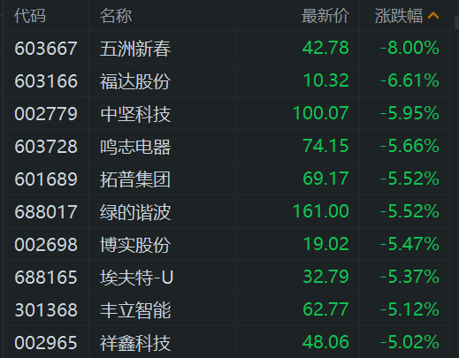 格隆汇2月10日|此前连续上涨的机器人概念股集体回调,其中,五洲新春(603667)大幅下跌超8%,福达股份(603166)跌6.6%,拓普集团(601689)、鸣志电器(603728)、超达装备跌超5%,埃夫特、绿的谐波、三花智控(002050)、丰立智能、巨轮智能(002031)等跟跌。 (责任编辑:宋政 HN002)