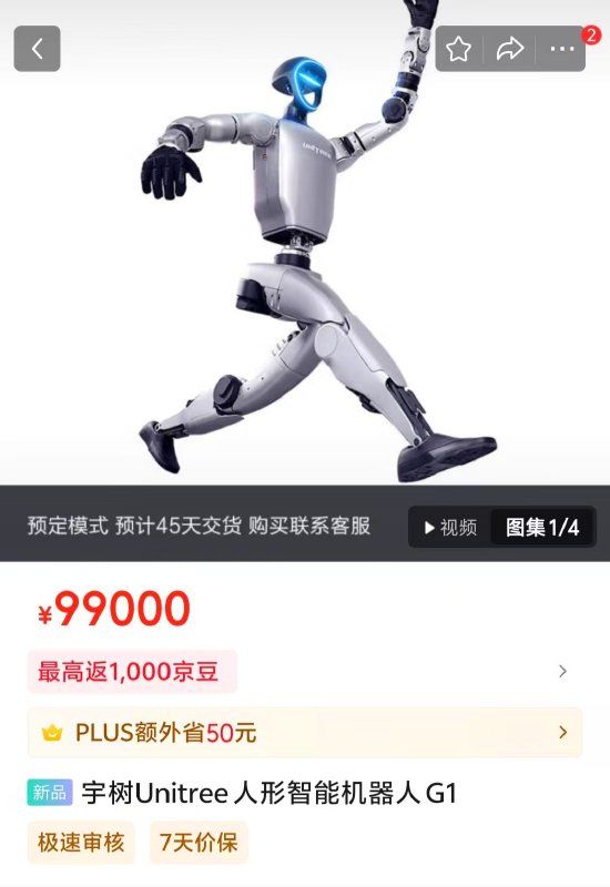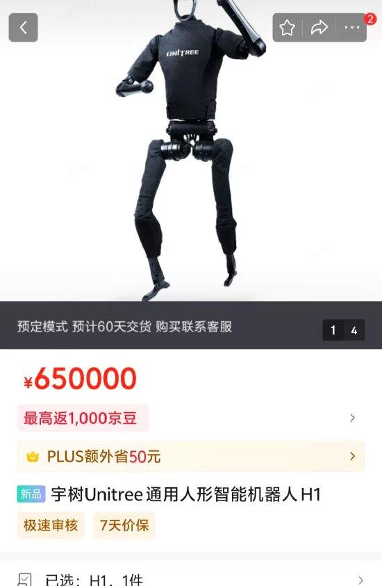 仟茂科技讯 2月12日晚间消息,近日,宇树科技的Unitree H1和G1人形机器人一度上线京东。Unitree G1人形机器人在京东的售价为99000元,预计45天可交货。Unitree H1人形机器人售价为650000元,预计60天可交货。 但目前,宇树科技人形机器人已从京东下架。京东客服表示,“下架的一般是售完了,或者商品调整。” 责任编辑:王若云 (责任编辑:郭健东 )