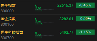 2月17日消息,港股三大指数持续走弱,截至发稿,恒指跌0.46%,恒生科技指数跌1.15%,国企指数跌0.59%。百度跌近6%,腾讯涨幅收窄至3.2%,此前一度涨超6%