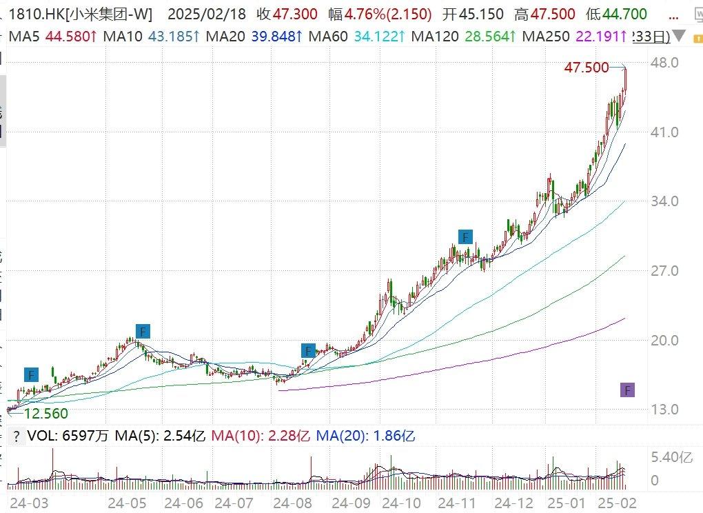 格隆汇2月18日|小米集团-W(1810.HK)持续拉升,涨幅扩大至超5%,报47.5港元,再创历史新高,市值逼近1.2万亿港元;该股年内累涨37%。 中金近日发表报告,预计小米上季收入同比增长34.3%至3639.3亿元或创历史新高,经调整净利润同比增长35.9%至66.7亿元(含8亿元汽车及创新业务亏损)。考虑汽车毛利率亮眼及YU7将于2025年发布,上调2024及2025年经调整净利润预测1.3%及19.7%,至分别255.9亿及406亿元,新引入2026年494.9亿元经调整净利润预测。 报告指,当前小米股价对应2025及2026年分别25.9及21倍市盈率,维持“跑赢行业”评级,综合考虑估值切换至2025年、盈利预测调整及行业估值中枢上移,基于对公司汽车业务盈利能力信心及端侧AI发展空间,上调目标价57.5%至50.4港元。(格隆汇) (责任编辑:宋政 HN002)