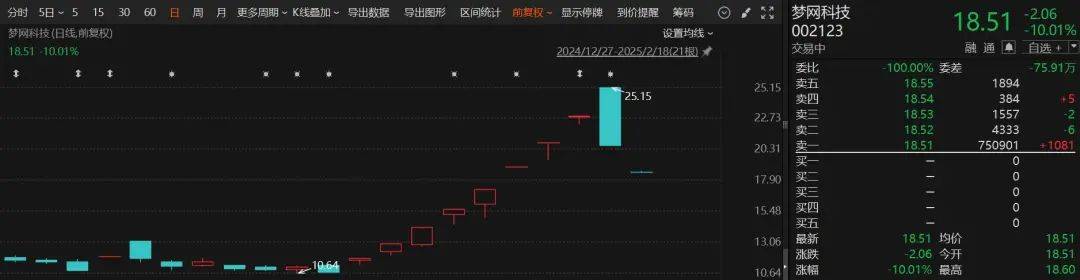 2月18日早盘,A股小幅震荡,AI医疗、DeepSeek概念、算力等板块下跌。多只高位人气股大幅走弱,光线传媒(300251)一度跌超8%。 截至发稿,沪指跌0.26%,深证成指跌0.36%,创业板指小幅下跌。 多只人气股大幅走弱 多只高位人气股大幅走弱,杭钢股份(600126)、梦网科技、居然智家、三江购物(601116)竞价跌停,浙大网新(600797)、浙数文化(600633)、光线传媒、数据港(603881)低开超4%。 光线传媒开盘后一度跌幅扩大至8%,截至发稿,跌逾7%,该股昨日冲高回落跌逾14%。 网络游戏概念股走强,大晟文化(600892)、电魂网络(603258)涨停,盛天网络(300494)、恺英网络(002517)、冰川网络(300533)、掌趣科技(300315)、富春股份(300299)等涨幅居前。消息面上,马斯克昨日发文确认旗下xAI将成立一家AI游戏工作室。 储能板块盘初走高,三变科技(002112)3连板,泰豪科技(600590)、昆工科技、蜀道装备、顺钠股份(000533)多数高开。消息面上,工信部等八部门印发《新型储能制造业高质量发展行动方案》,方案提出,支持具备条件的工业企业、园区建设工业绿色微电网,积极推进新型储能技术产品在工业领域应用。 AI医疗概念低迷,思创医惠(300078)跌近9%,迪安诊断(300244)、祥生医疗、嘉和美康、润达医疗(603108)、贝瑞基因(000710)等均跌超5%。 港股DeepSeek概念股继续活跃 港股走强,截至发稿,香港恒生指数开盘涨0.51%。恒生科技指数涨超1%。 个股方面,谭仔国际复牌大涨。截至发稿,谭仔国际涨超62%。根据公告,持股74.26%大股东Toridoll提出私有化建议,每股现金要约价1.58港元,较停牌前收报溢价75.56%,涉及最高现金代价约5.56亿元。计划生效后,公司将申请撤销股份于联交所的上市地位。 小米集团继续攀升,涨幅扩大至5%再创新高,市值逼近1.2万亿港元。 港股DeepSeek概念股延续涨势,截至发稿,创梦天地涨超9%、心动公司涨6.83%、华虹半导体涨5.82%、万国数据-SW涨5.04%。 中信证券研报称,Deepseek的开源生态有望加速AI在应用端的渗透与普及,预计投资情绪将从底层硬件端向应用端持续蔓延,中国互联网资产有望进入价值重估周期。建议从两个视角进行关注:1)中国优质互联网资产相较于美国同行业绩增速差距不大,但存在明显估值折价,AI或成为价值重估的催化剂;2)大模型边际成本下降,助力应用端百花齐放,激发新一轮互联网创新周期。消费互联网龙头标的一方面在技术实力、数据储备、应用场景等维度均是AI发展与应用的沃土。中信证券(600030)看好头部消费互联网公司后续在AI方向的应用落地,并对其2025年估值提升保持积极判断。 本文首发于微信公众号:e公司。文章内容属作者个人观点,不代表和讯网立场。投资者据此操作,风险请自担。 (责任编辑:宋政 HN002)