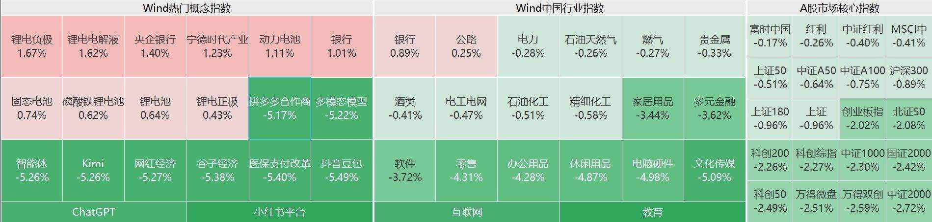 格隆汇2月18日|A股主要指数跌幅进一步扩大,创业板指跌超2%,深证成指跌1.6%,沪指跌近1%。超4600股下跌,不到700股上涨。教育、互联网、文化传媒、电脑硬件股跌幅居前,银行股逆势上涨。