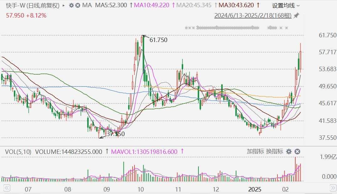 格隆汇2月18日|快手-W(1024.HK)盘中拉升,一度涨超11%,报59.8港元,股价创去年10月8日以来新高。快手旗下的可灵AI此前向全球推出“多图参考”模式,这一创新功能进一步巩固了快手在AI视频生成领域的技术领先地位。据悉,新推出的“多图参考”模式, 能够理解和整合多个图片中的不同主体,根据用户的文字描述,创造性地生成融合视频,进一步攻克了AI视频生成中的一致性难题。瑞银表示看好快手,指其影像生成AI具有全球领先的竞争力,给予“买入”评级,目标价76.4港元。 (责任编辑:宋政 HN002)