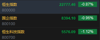 2月19日消息,美股周二反覆靠稳,俄乌战争展开停战谈判,有利市场气氛,但投资者继续关注全球贸易战加剧,拖累三大指数收市升跌不一。美元走势向好,美国十年期债息回升至4.55厘水平,金价及油价亦表现向上。今日港股三大指数集体低开,恒生指数涨0.87%,报22777.46点,恒生科指跌1.12%,国企指数跌0.96%。盘面上,科网股集体回调,京东跌3%,阿里巴巴跌超2%,美团、百度跌近2%;汽车股涨跌不一,蔚来跌超2%,小鹏涨近2%;黄金股普遍上涨,山东黄金(600547)、招金矿业涨超1%。 (责任编辑:宋政 HN002)