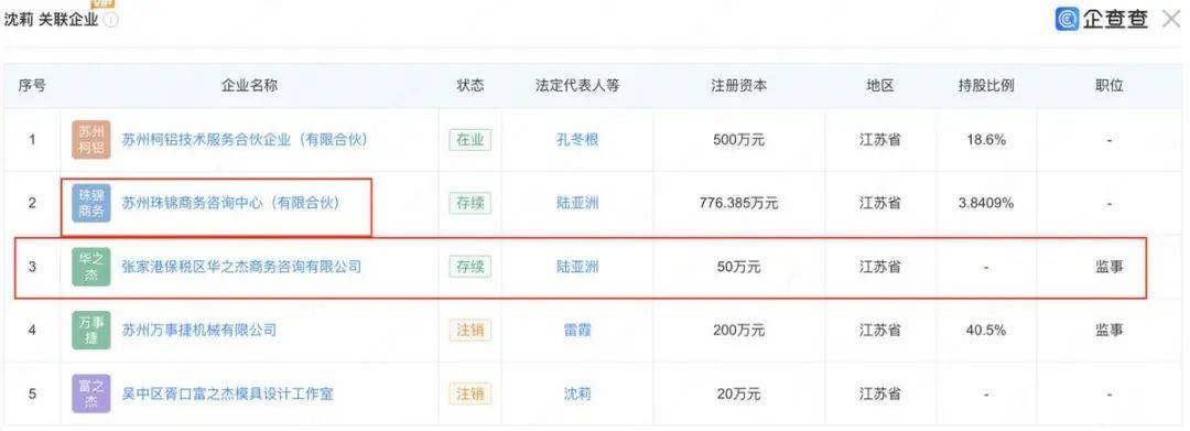 本文授权来自《中国民商》 作者:郑勇康 编辑:张佳茗 苏州华之杰电讯股份有限公司(下称“华之杰”)定位于智能控制行业,是一家致力于为电动工具、消费电子等领域产品提供智能、安全、精密的关键功能零部件的供应商。 华之杰曾在2020年9月申报科创板IPO,但在历经了将近两年时间后撤回。2023年2月27日华之杰转战沪市主板获受理,其保荐机构由国泰君安(601211)变更为中信建投(601066),审计机构也由江苏公证天业所变更为天健所。 股权激励员工离职后仍持股 华之杰于2016年12月21日设立了苏州珠锦商务咨询中心(有限合伙,下称“苏州珠锦”)作为员工持股平台,间接持有华之杰364.50万股股份。 问询回复显示,截至2024年3月19日,华之杰历次股权激励中共有13名员工离职,其中10名员工转让了股权,但仍有3名员工则保留了股权,分别为曹义忠、牛宝群与沈莉。申报材料中显示,实控人陆亚洲综合考虑这三人的历史工作成果及对公司的经营贡献等因素,批准沈莉、牛宝群及曹义忠不退伙,间接持有公司29万股股份。 曹义忠于2020年1月至2022年9月任华之杰董事,此外还担任华之杰子公司越南华捷电子有限公司(下称“越南华捷”)的法定代表人、越南管理部经理。牛宝群曾任华之杰的财务经理。 另据企查查,同名人员沈莉还在华之杰股东张家港保税区华之杰商务咨询有限公司担任监事职位。 (截图来自企查查) 《民商财经》查阅华之杰所披露的其他高级管理人员简历后发现,华之杰存在1名高级管理人员于报告期内(2019年至2022年6月,下同)离职,2名人员在离职后又返回公司任职的情况。 徐黎明于2020年1月至2022年5月任华之杰副总经理,也曾担任越南华捷的法定代表人,于2019年获得股权激励,离职后即转让了所持股权。 核心技术人员郭惠玖,曾于2011年5月至2018年3月任华之杰研发部高级工程师,在离职了1年多后又于2019年8月被返聘为华之杰副总经理、研发总监,现对苏州珠锦的出资份额为2.74%。 董事、副总经理顾飞峰,曾两次从华之杰离职后又于2022年4月返回公司任职,曾于2017年获得股权激励,但在前次离职时已转让了股权。 子公司财务数据自相打架 华之杰分别在美国、香港、墨西哥、越南等境外国家和地区设立了境外子公司,交易所就境外子公司报告期内的业务类型、主要供应商和客户、资产状况以及业绩情况等进行了问询。 就招股书和问询回复所披露的2021年度数据,有2家子公司的财务数据存在差异。 问询回复显示,2021年12月31日,越南华捷的总资产为16,990.90万元,净资产为5,073.84万元,当年度净利润为1,799.74万元;而招股书所列的前述对应数据分别为16,987.61万元、5,070.55万元、1,796.45万元;两处文件中的数据均相差了3.29万元。 问询回复还显示,2021年12月31日,华杰科技(墨西哥)有限公司的总资产为3,729.66万元,净资产为2,364.48万元,当年度净利润为-698.94万元;而招股书所列前述各项数据分别为3,687.93万元、2,322.75万元、-740.67万元;两处文件中的数据均相差了41.73万元。 华捷(香港)科技贸易有限公司、华捷科技美国有限公司、香港嘉品科技有限公司这3家子公司的2021年数据则无信披差异。 报告期内曾新建项目扩产能 本次IPO拟募投的年产8,650万件电动工具智能零部件扩产项目在建设完成后,华之杰将新增年产200万件直流无刷电机、250万件直流无刷电机智能控制器、2,000万件智能开关、1,000万件锂电池智能控制技术模块、4,000万件电池夹、1,200万件碳刷架的生产能力。 上述募投项目拟投入募集资金42,608.58万元,其中设备购置及调试的金额为34,070.68万元,占比高达79.96%,主要用于购置电池夹自动化装配线、生产线线体、全自动灌胶烘烤线等。 值得注意的是,公开信息显示,报告期内华之杰曾新建一项目扩充产能。 绿网显示,2020年4月,华之杰就年产8,450万件电动工具零配件技改项目(下称“8,450万件技改项目”)、研发中心建设项目取得了环评批复,批文号分别为苏行审环评〔2020〕60012号、苏行审环评〔2020〕60013号。 据环评批复文件,8,450万件技改项目的总投资为36,814.7万元,建设完成将新增年产200万件直流无刷电机、250万件直流无刷电机智能控制器产品、2,000万件智能开关、1,000万件锂电池智能控制技术模块、4,000万件电池夹、1,000万件碳刷架的生产能力。该项目与前述的本次IPO募投项目少了200万件碳刷架的产能。 研发中心建设的总投资为7,126.61万元,侧重产品功能、性能以及工艺流程自动化研发等方面的研发,新产品的开发等,建成后不新增产能。 绿网显示,8,450万件技改项目和研发中心建设项目均于2020年8月8日竣工,项目实际投资总额为43,941.31万元,其中环保投资95万元。 (截图来自绿网) 但值得注意的是,审计报告显示,2020年度,华之杰本期购置的固定资产金额仅为2,521.69万元,在建工程转固的金额为145.00万元,为越南公寓项目。截至2020年12月31日,在建工程期末余额为29.78万元。同时,华之杰2020年度购置的无形资产金额为21.56万元,主要为购置的软件。 综上,2020年度,华之杰新增固定资产和无形资产的金额远不及当年度两个竣工项目的实际投资总额。 招股书显示,由于公司产品的种类较多、规格差异较大,以件或个数为单位衡量各大类产品的产能并不能直观的反映产能情况,因此通过比较主要产品的理论工时和实际工时的方式说明公司的产能利用率情况。2019年至2021年,公司主要产品